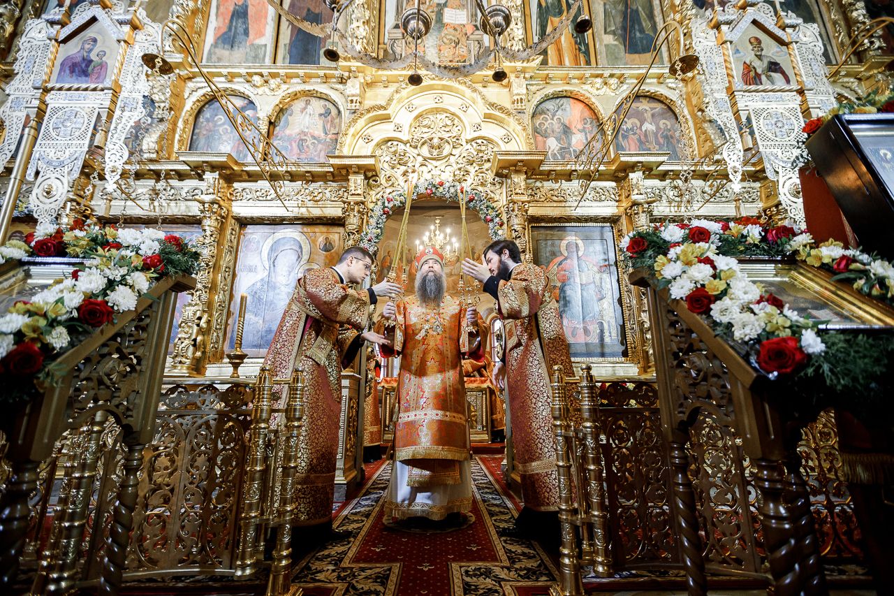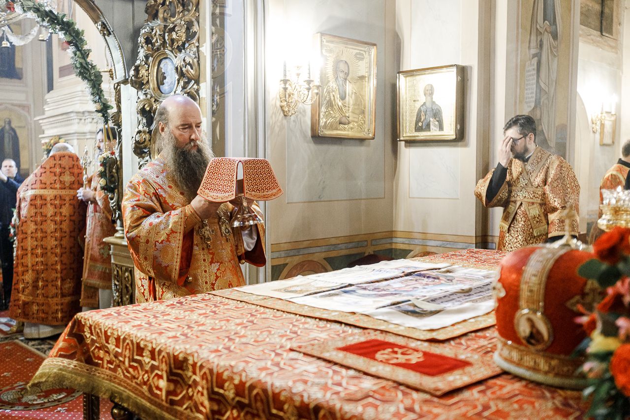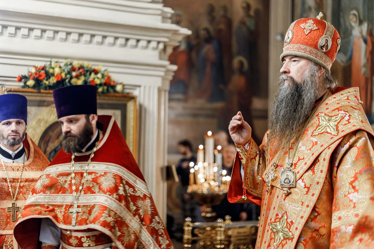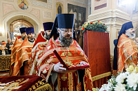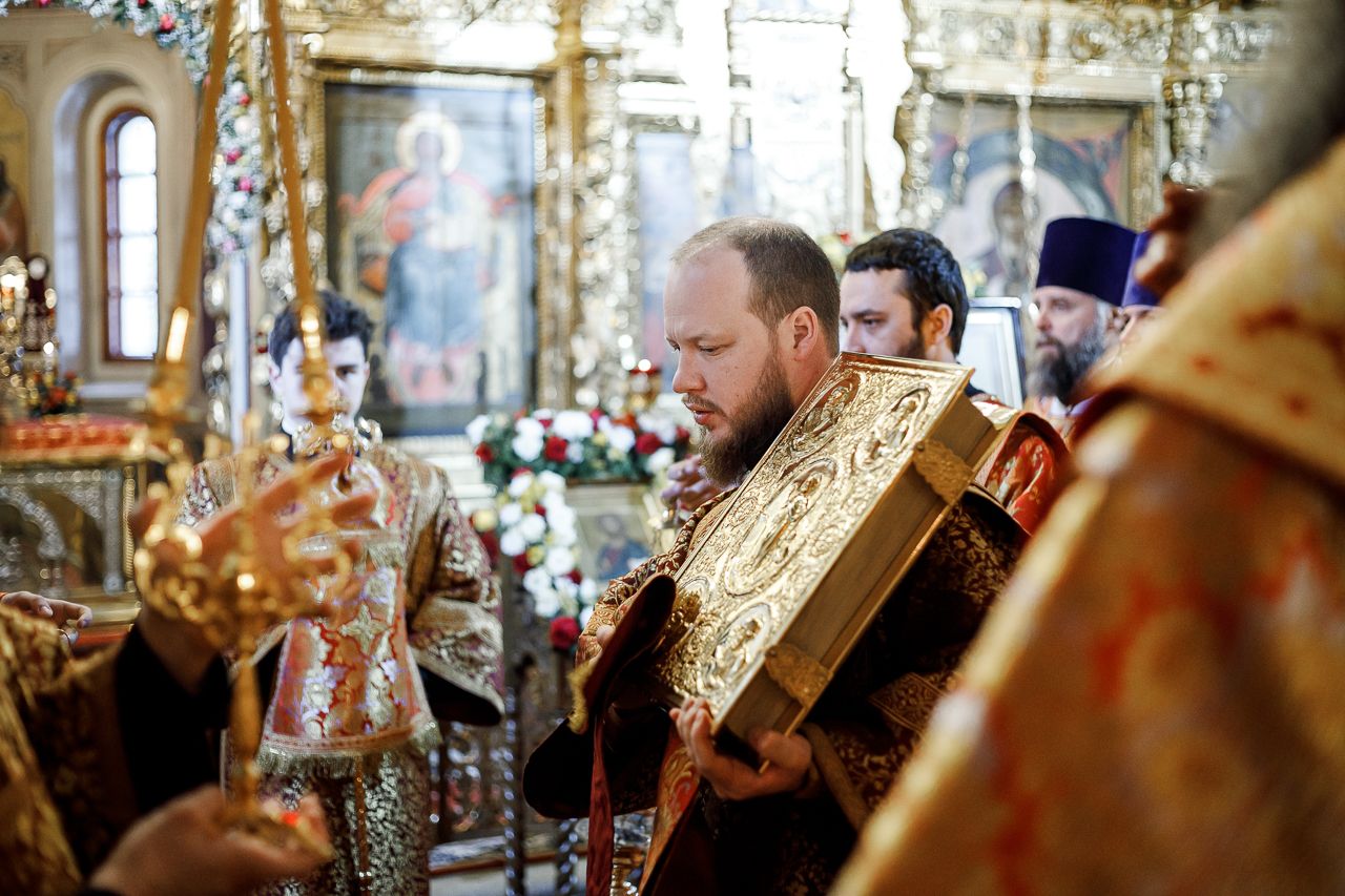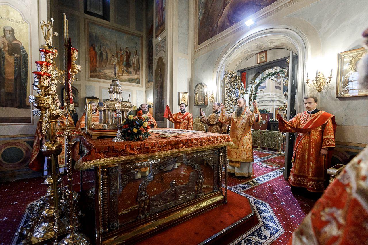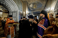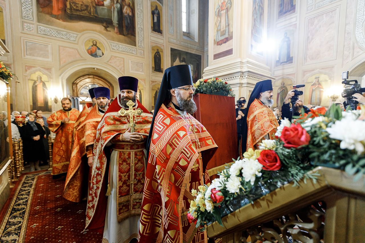 Его Преосвященству сослужили: благочинный Дмитровского церковного округа иеромонах Иосиф (Романов), благочинный Дубненско-Талдомского церковного округа протоиерей Павел Мурзич, благочинный Рогачевского церковного округа иерей Сергий Сафронов, благочинный монастырей Сергиево-Посадской епархии игумен Алексий (Горлычев), благочинный Яхромского церковного округа иерей Сергий Бернацкий, настоятель Борисоглебского мужского монастыря г. Дмитрова игумен Августин (Шорников), а также приглашенное духовенство.