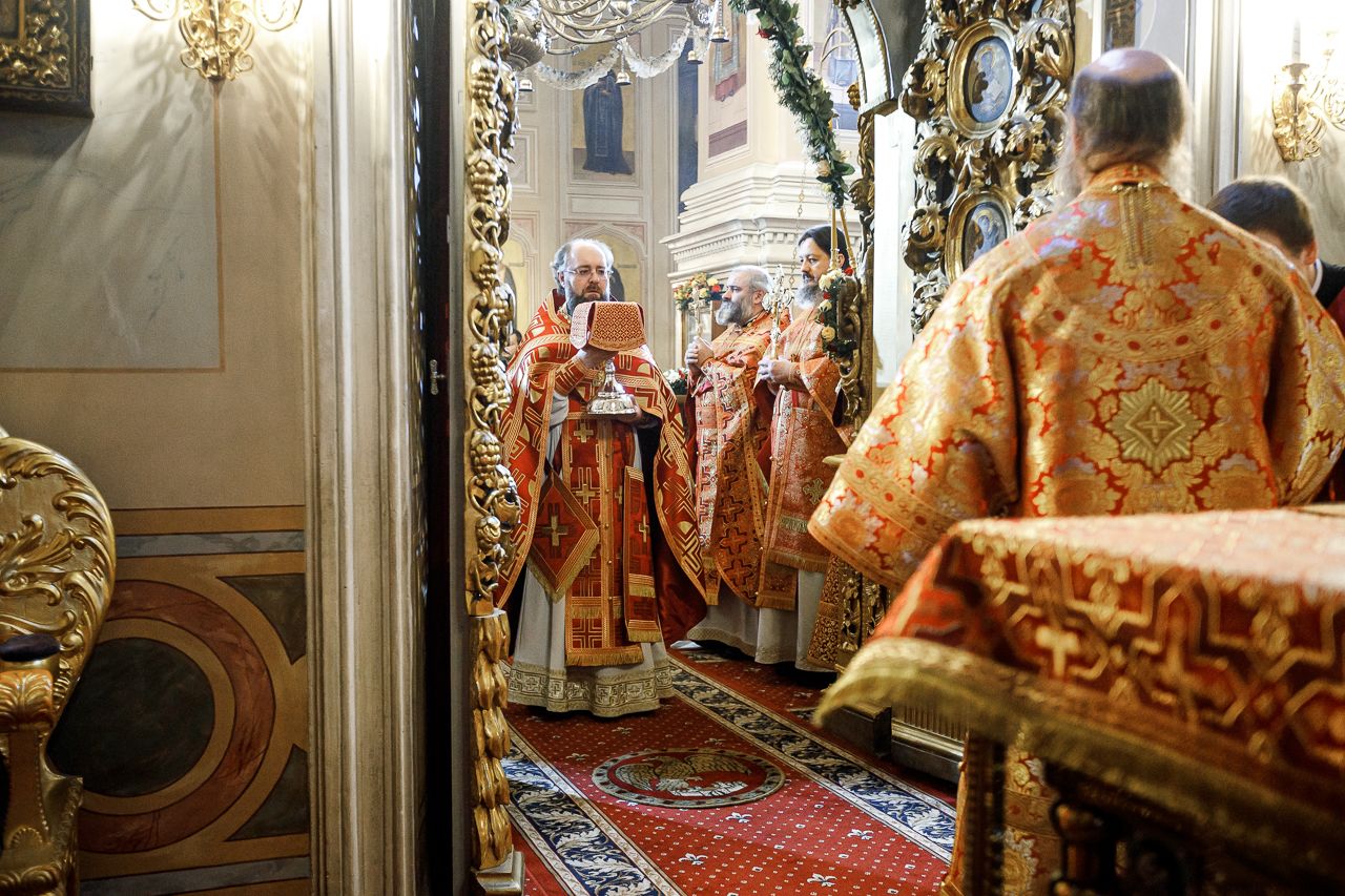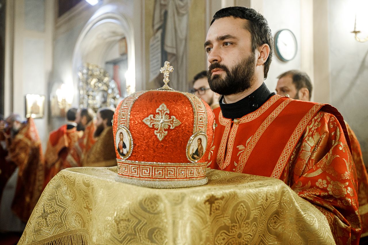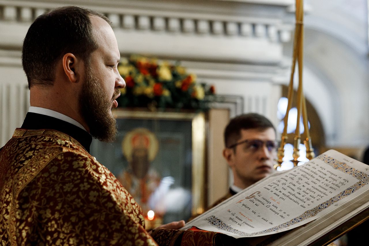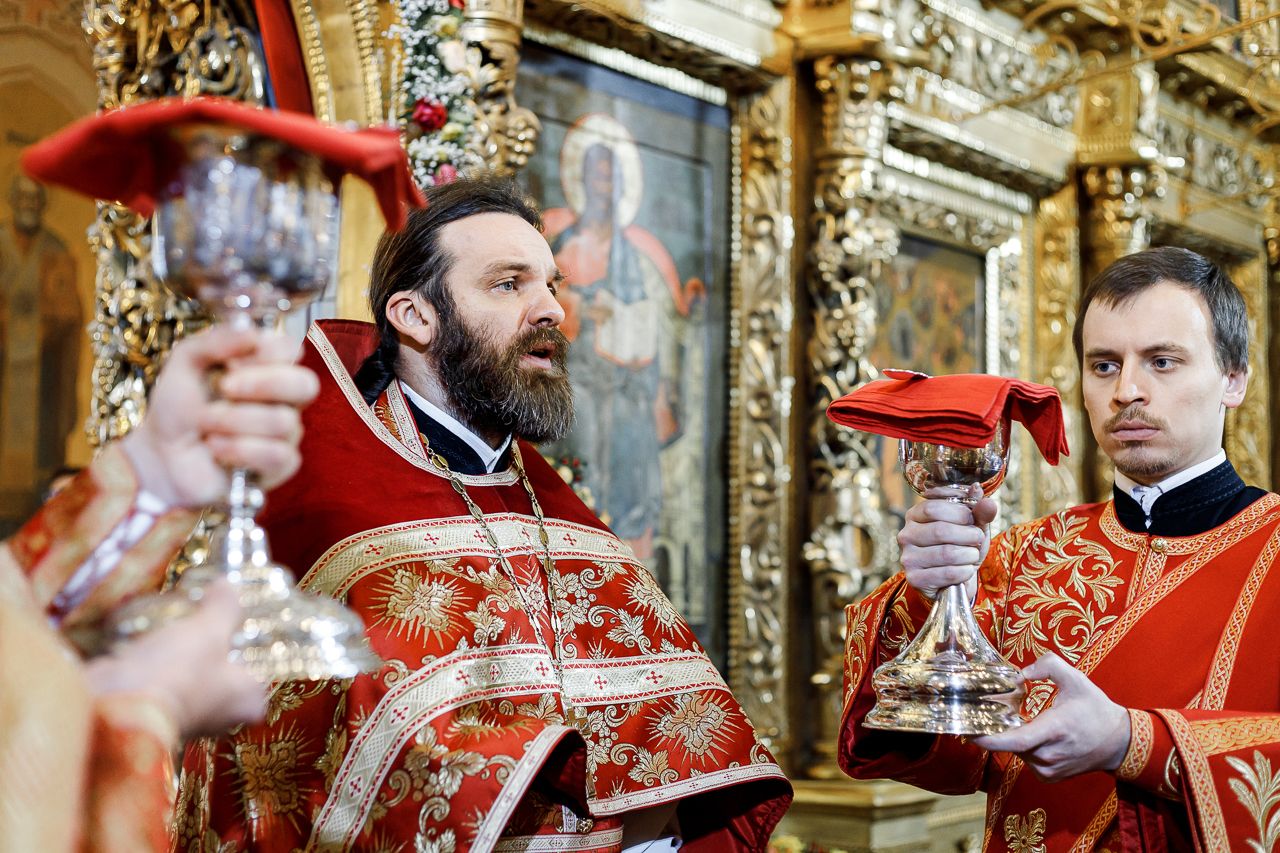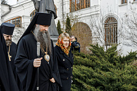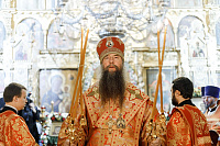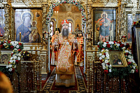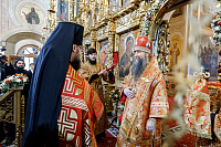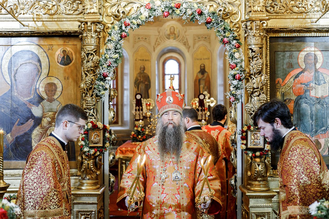 Его Преосвященству сослужили: благочинный Дмитровского церковного округа иеромонах Иосиф (Романов), благочинный Дубненско-Талдомского церковного округа протоиерей Павел Мурзич, благочинный Рогачевского церковного округа иерей Сергий Сафронов, благочинный монастырей Сергиево-Посадской епархии игумен Алексий (Горлычев), благочинный Яхромского церковного округа иерей Сергий Бернацкий, настоятель Борисоглебского мужского монастыря г. Дмитрова игумен Августин (Шорников), а также приглашенное духовенство.