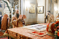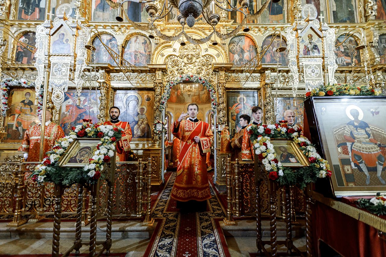 По окончании богослужения епископ Кирилл и сослужащее духовенство совершили славление великомученику Димитрию Солунскому.