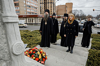 Также епископ Кирилл принял участие в торжествах города. Вместе с заместителем главы Дмитровского г.о. Еленой Александровной Виноградовой Владыка возложил цветы к памятнику священномученику Серафиму (Звездинскому) и памятнику великомученику Димитрию Солунскому.