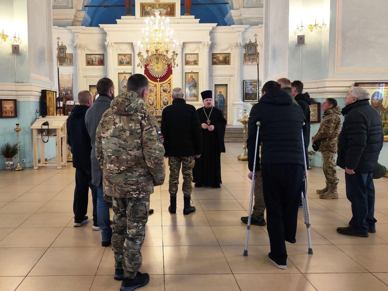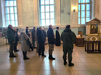 После экскурсии была отслужена панихида по усопшим воинам; бойцы написали записки о здравии раненых и о упокоении погибших товарищей. В завершении встречи состоялась совместная трапеза, после которой воинам были вручены воинские молитвословы и иконы.