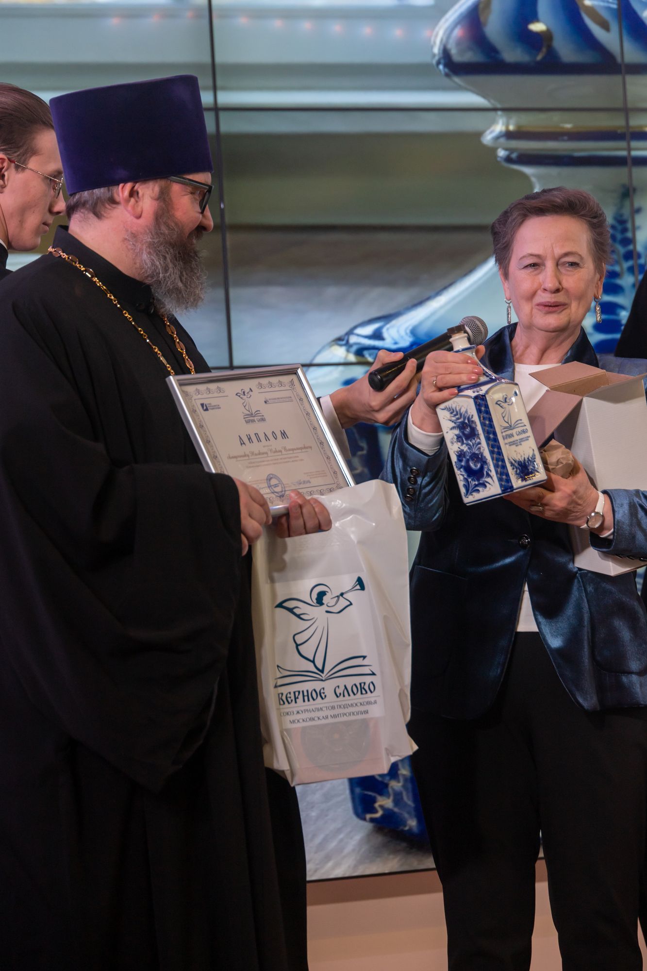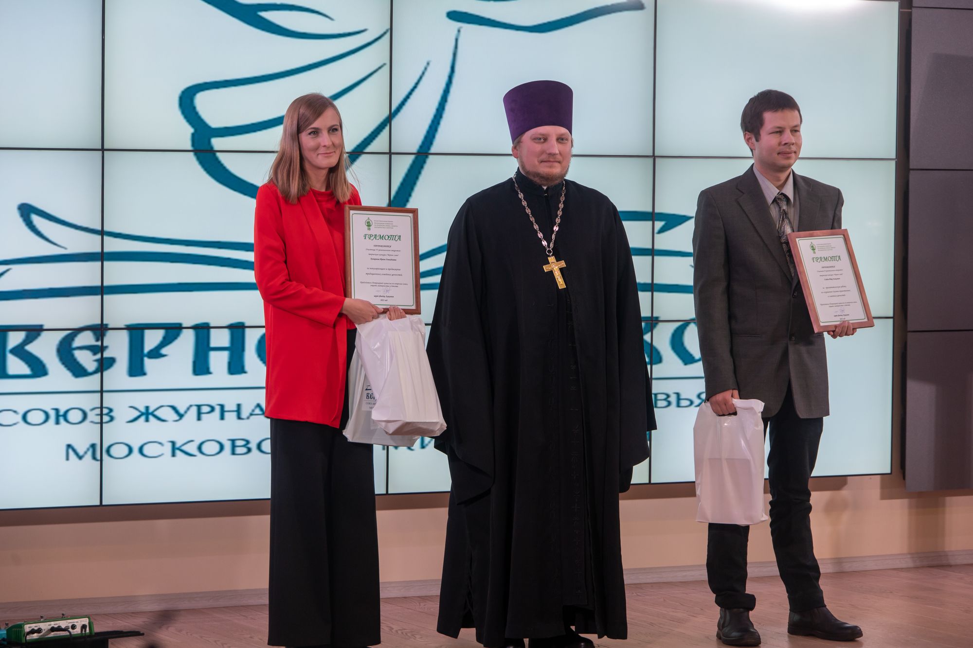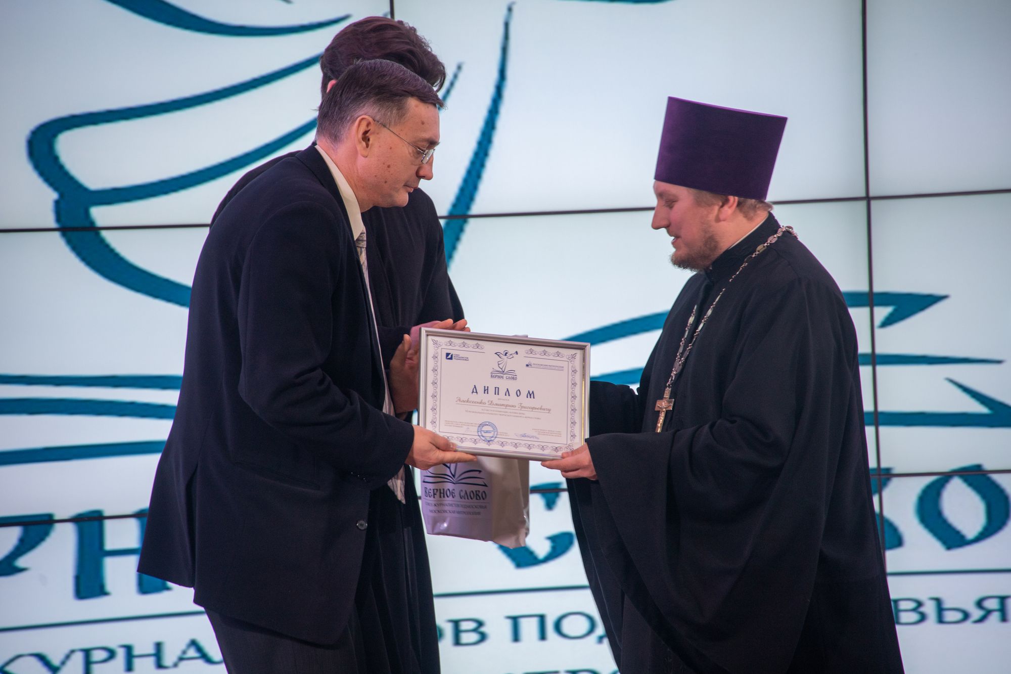Также от Московской митрополии в церемонии награждения приняли участие: Ректор Коломенской духовной семинарии протоиерей Вадим Суворов; руководитель пресс-службы Московской митрополии, член Оргкомитета конкурса «Верное слово» иерей Павел Галушко и куратор проекта «Верное слово» от Московской митрополии, выпускающий редактор газеты «Благовестник» города Коломны протоиерей Игорь Бычков.