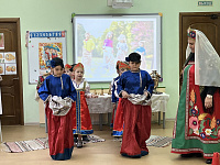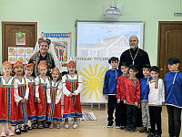 Встреча на тему «Православная и Отечественная культура. Традиции и обычаи земли матушки» проходила в рамках XXI Московских областных Рождественских чтений. Отец Алексий обратился к ребятам с напутственным словом. В программе утренника также были различные конкурсы, хороводы и чаепитие.