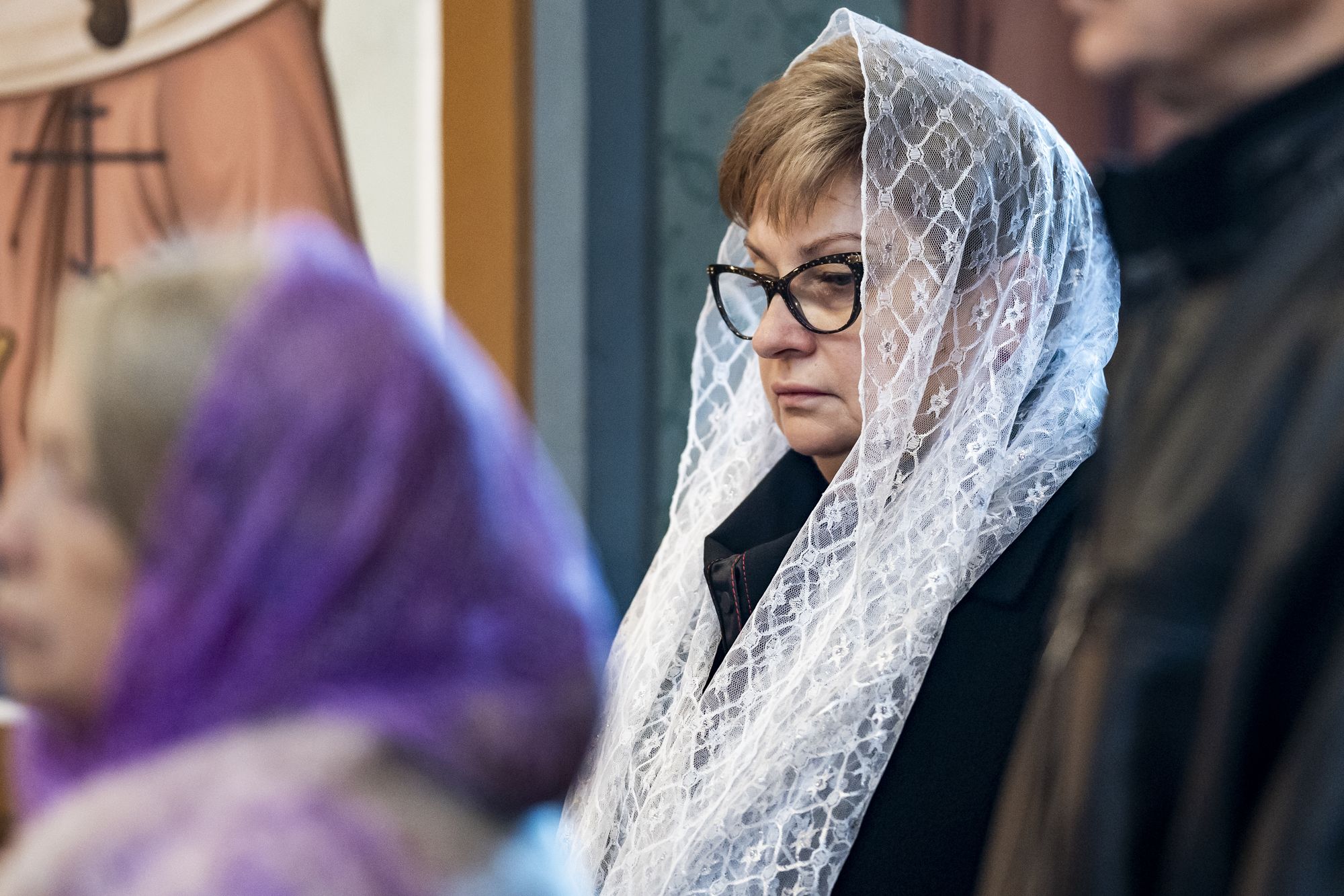 За богослужением молились глава Ленинского г.о. А.П.Спасский и его заместитель Т.Ю.Квасникова.