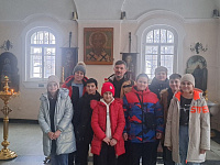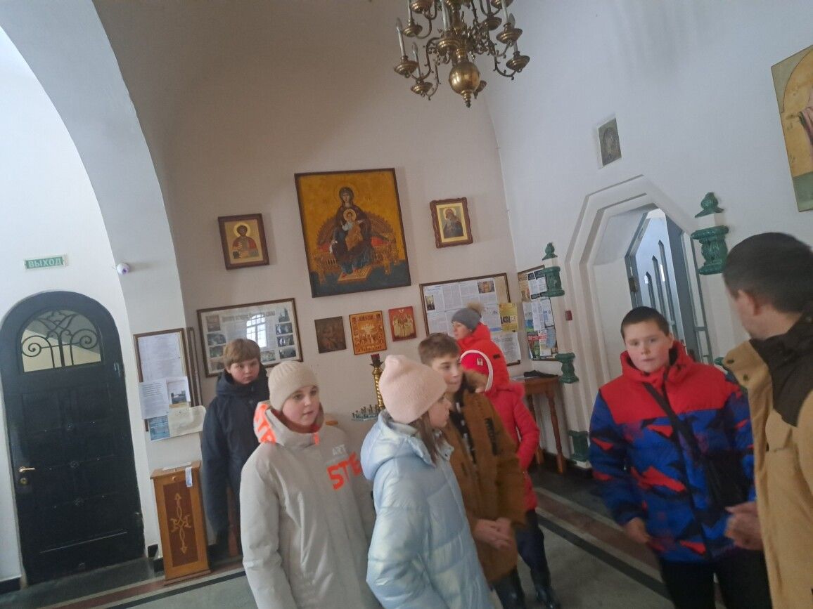 Алтарник Александр Нестеров рассказал школьникам об истории храма и прилежащей территории. В общении с учащимися, во время обзора и изучения храмового пространства с использованием краеведческого исторического материала, Александр рассказал об основах христианской веры, ответил на вопросы ребят.