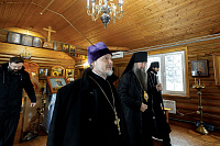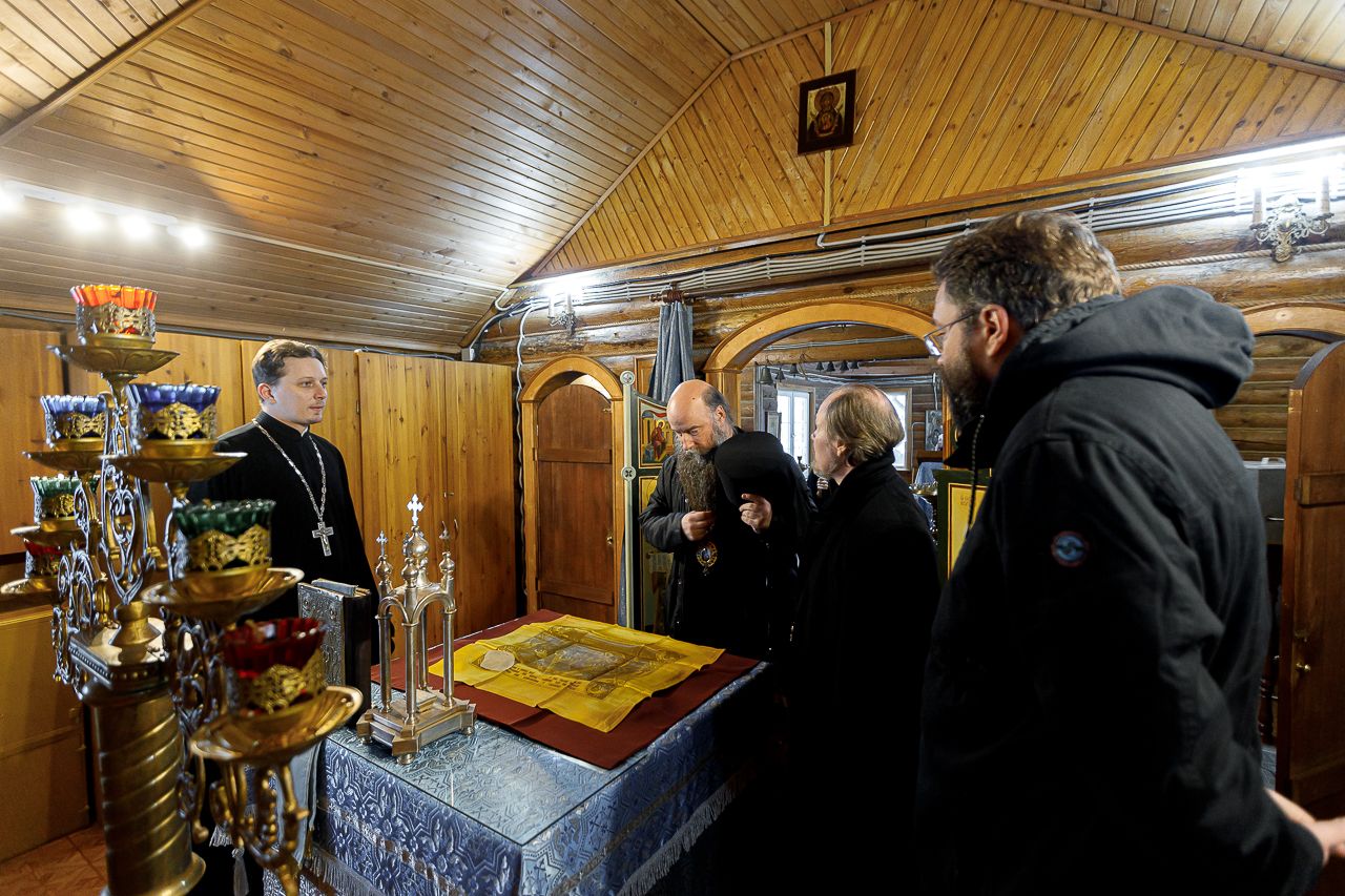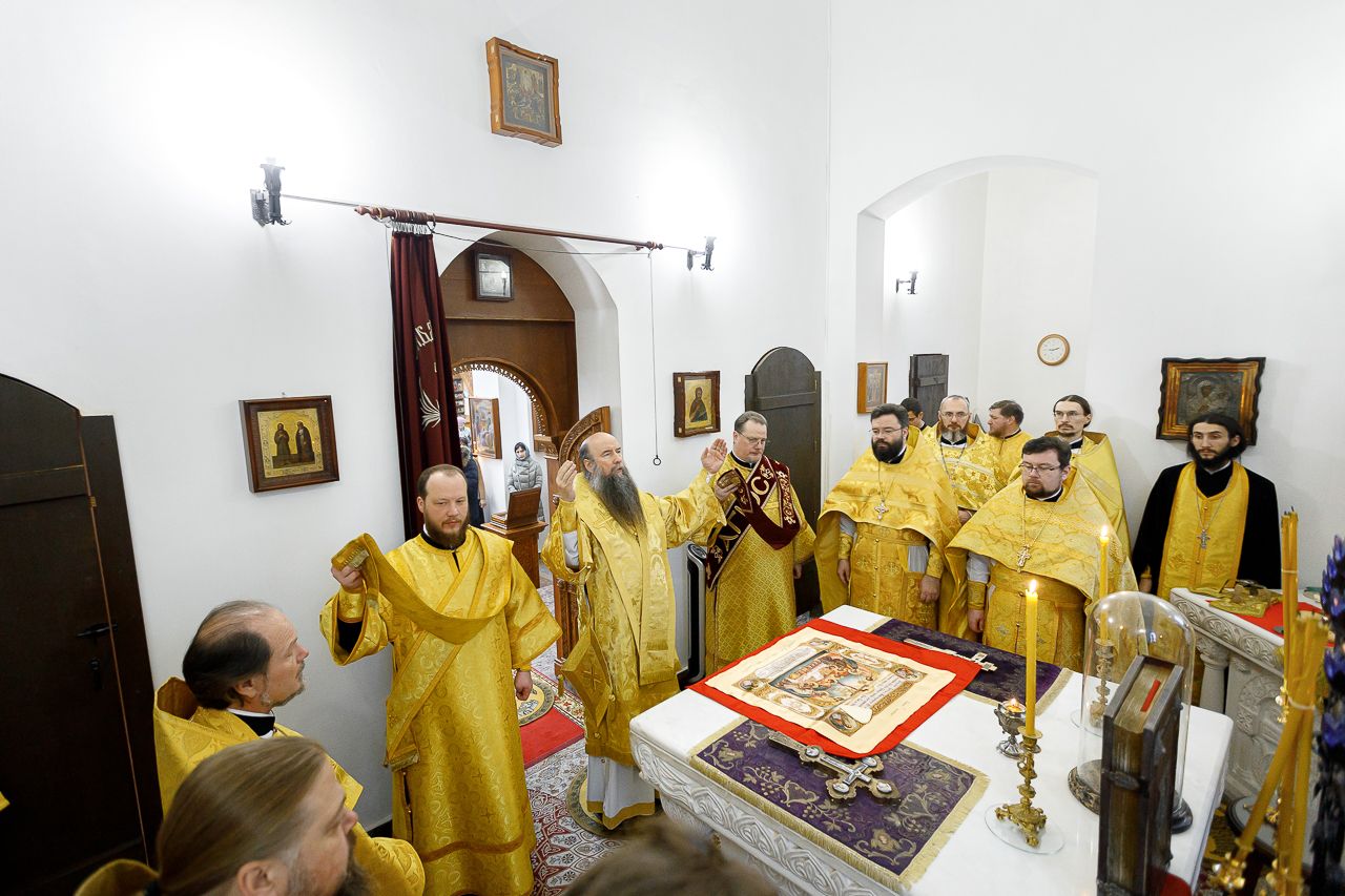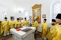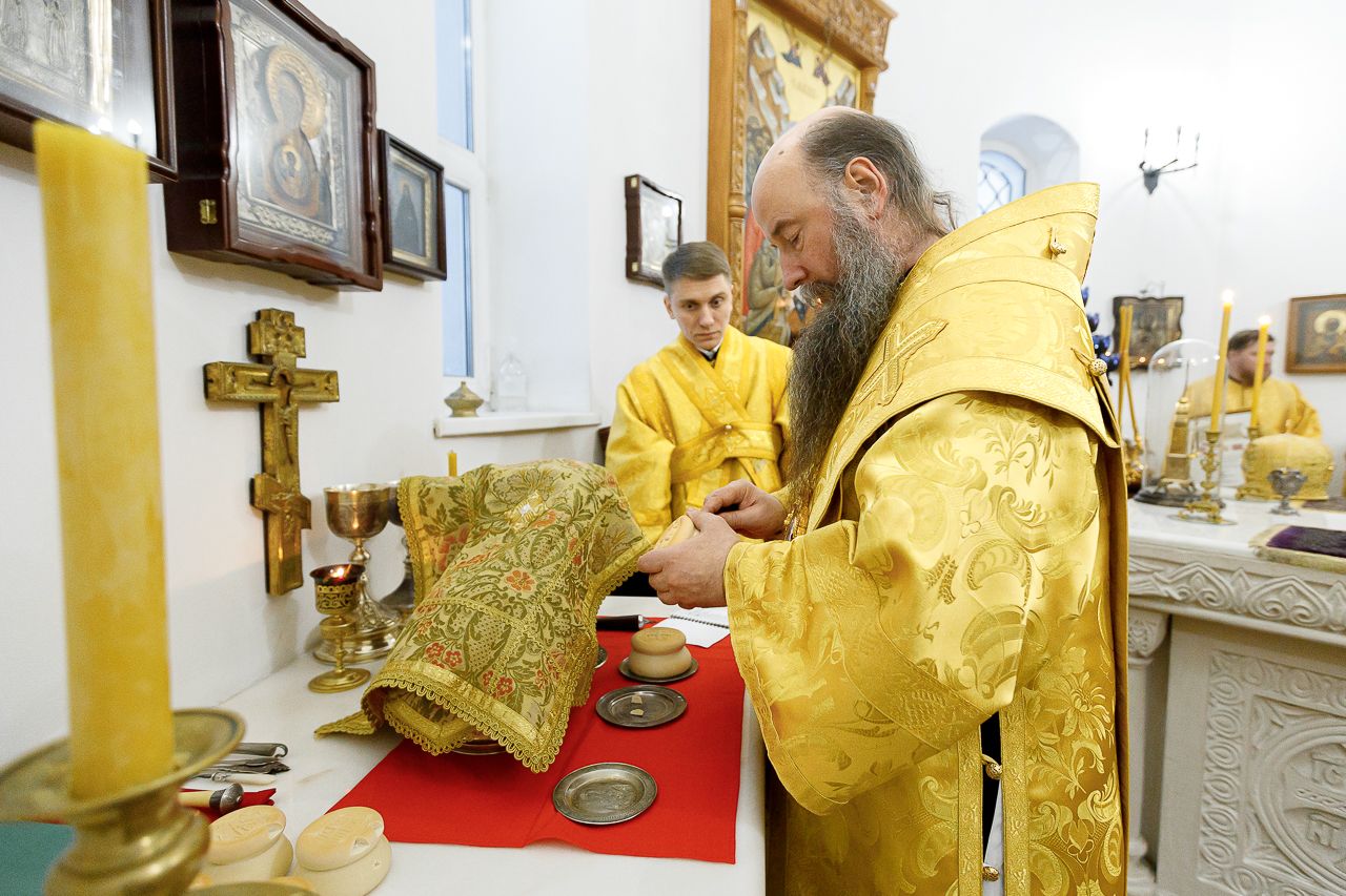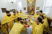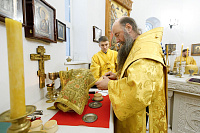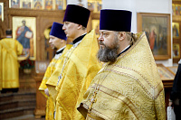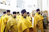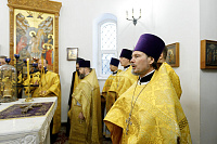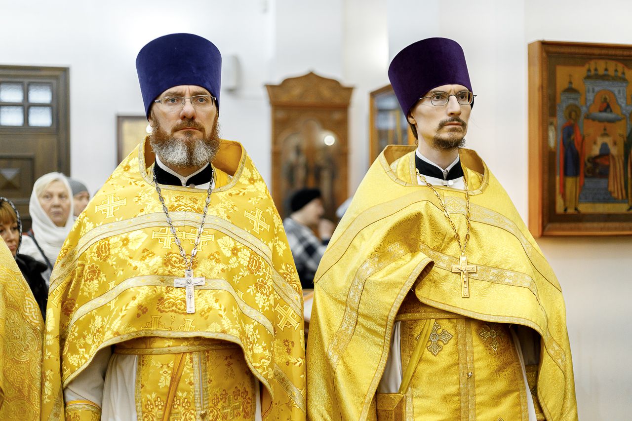 Его Преосвященству сослужили: благочинный Долгопрудненского церковного округа настоятель храма Преображения Господня протоиерей Андрей Хмызов, благочинный Химкинского церковного округа протоиерей Артемий Гранкин, благочинный Солнечногорского церковного округа протоиерей Антоний Тирков, а также приглашенное духовенство.
