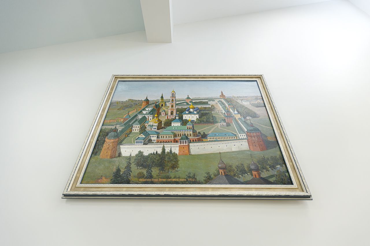 Затем Владыка передал в дар благочинию картину с изображением Троице-Сергиевой Лавры.