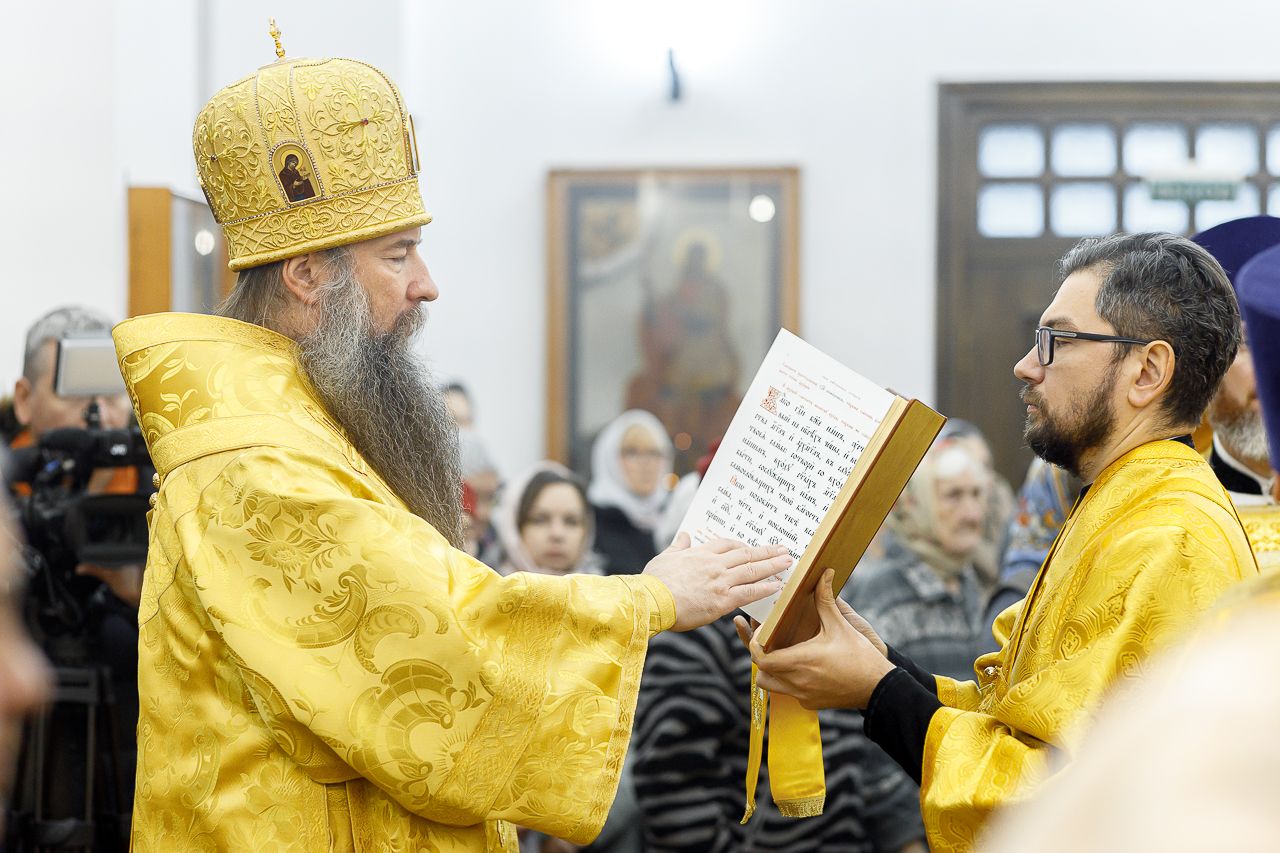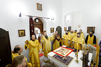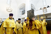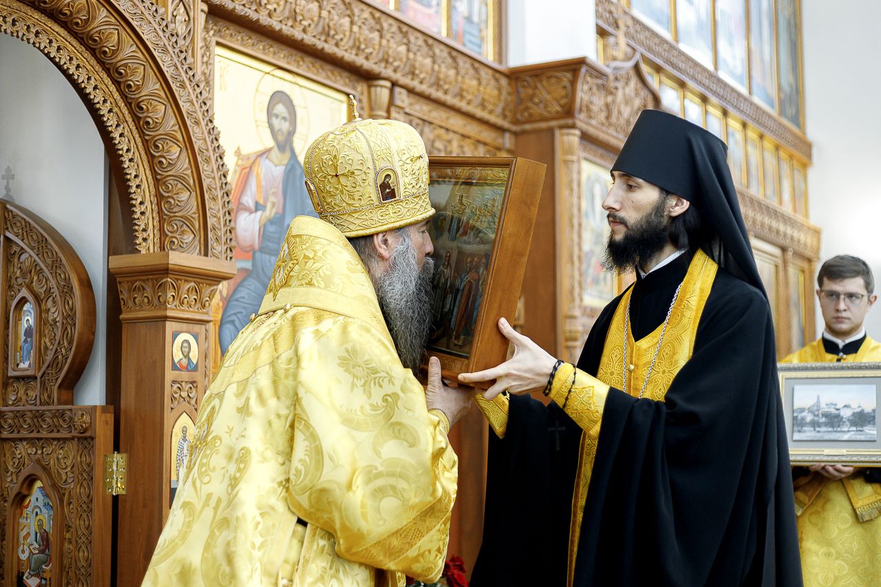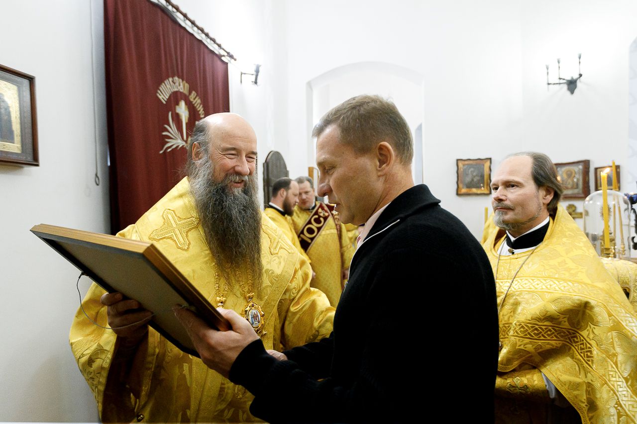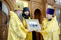 По окончании Литургии настоятель храма протоиерей Андрей Хмызов поблагодарил Владыку за архипастырский визит в столь значимый день для благочиния – 15-летие со дня образования Долгопрудненского церковного округа, а также преподнес ему в дар икону Покрова Пресвятой Богородицы.
