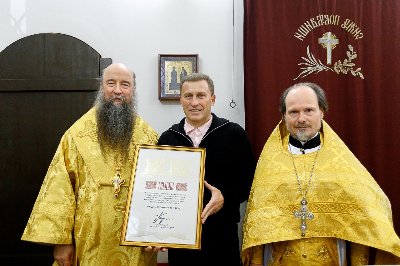Также в связи с 15-летием образования Долгопрудненского церковного округа епископ Кирилл вручил епархиальные грамоты клирикам и мирянам, принимающим активное участие в жизни благочиния. Их получили: