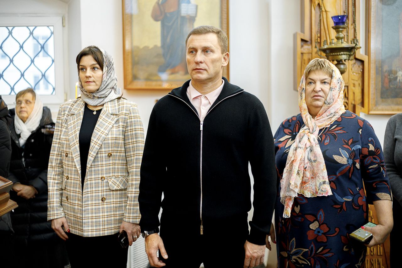 На Литургии присутствовали: глава г.о. Долгопрудный Владислав Юрьевич Юдин, первый заместитель главы Администрации Светлана Васильевна Курсова, председатель Совета депутатов Дмитрий Викторович Балабанов, руководитель Управления делами Администрации Мария Анатольевна Шарибзянова.