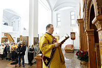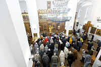 За богослужением проповедь произнес клирик храма Преображения Господня иерей Иоанн Слобжин.
