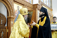Епископ Кирилл в ответном слове поздравил отца Андрея, клириков и всех молящихся с праздником и обратился к присутствовавшим со словами напутствия: