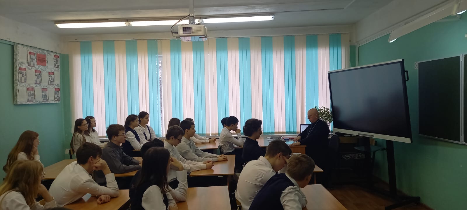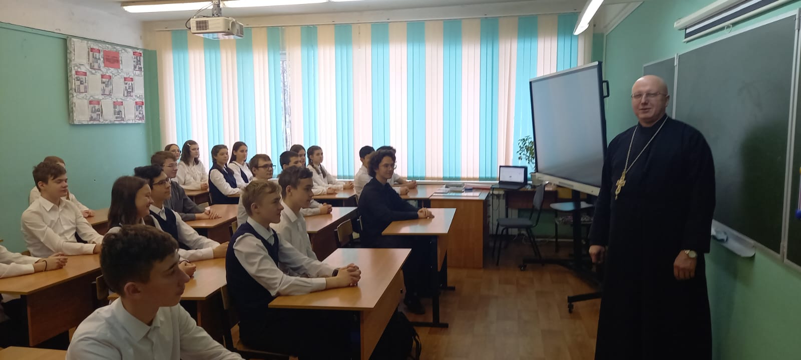 28 ноября 2023 года клирик Преображенского храма п. Запрудня протоиерей Павел Семёнов провёл классный час в 9-м классе местной школы на тему «О путях к Богу». В рамках заданной темы отец Павел затронул такие важные аспекты подростковой жизни, как поиск смыла бытия, духовные и экзистенциональные трудности переходного возраста, христианский идеал нравственности, свобода в добродетели и рабство греху.