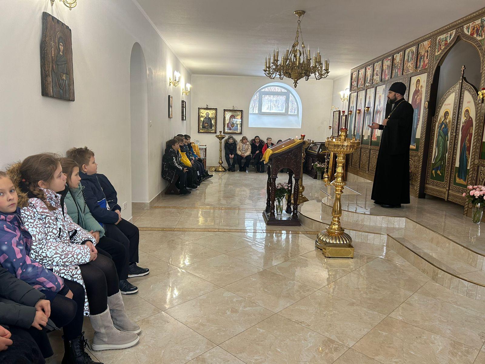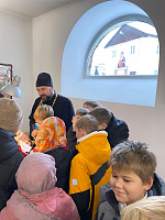 28 ноября в храме священномученика Серафима (Звездинского) п. Икши состоялась тематическая встреча настоятеля священника Сергия Савенка с учащимися 3 и 4 классов Икшанской школы. В стенах церкви отец Сергий провел для детей урок на тему «Моя Родина – Святая Русь. Подвиг и вера», после чего ответил на вопросы школьников.