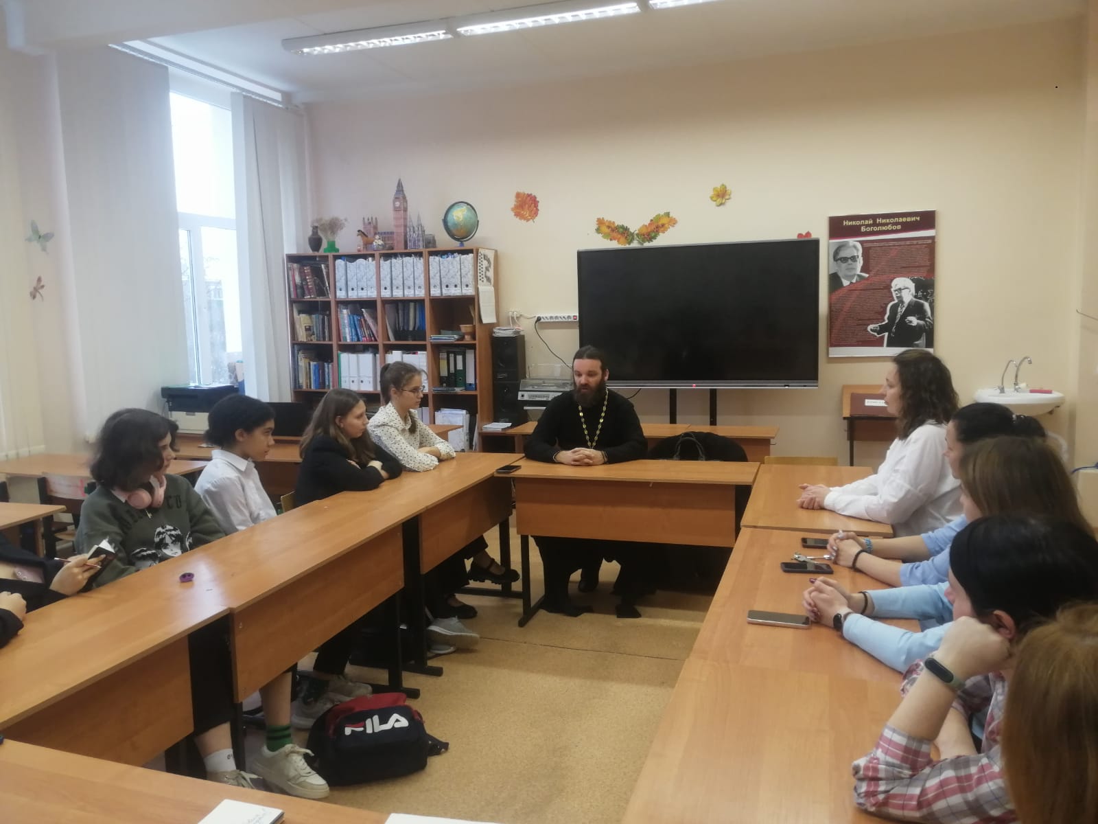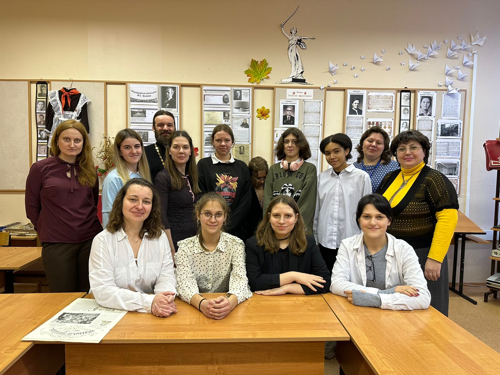 29 ноября 2023 года благочинный Дубненско-Талдомского церковного округа протоиерей Павел Мурзич в рамках Рождественских общеобразовательных чтений провёл встречу с педагогами и старшеклассниками гимназии № 8 им. академика Н.Н. Боголюбова г. Дубны на тему «Есть ли место Христу в современной жизни?». После беседы на заданную тему от педагогов и учащихся были вопросы, касающиеся различных сторон духовных, нравственных и социальных сфер.