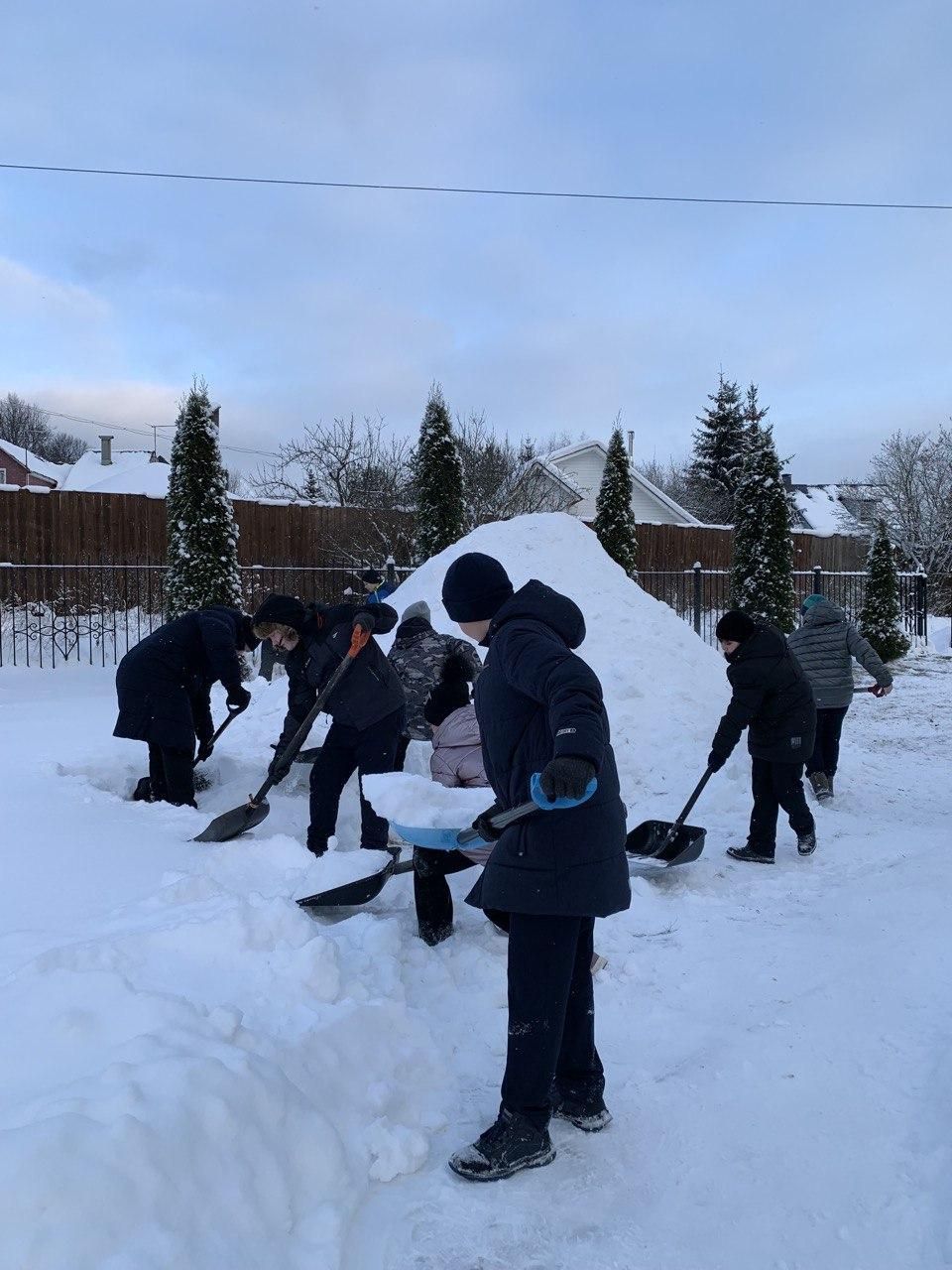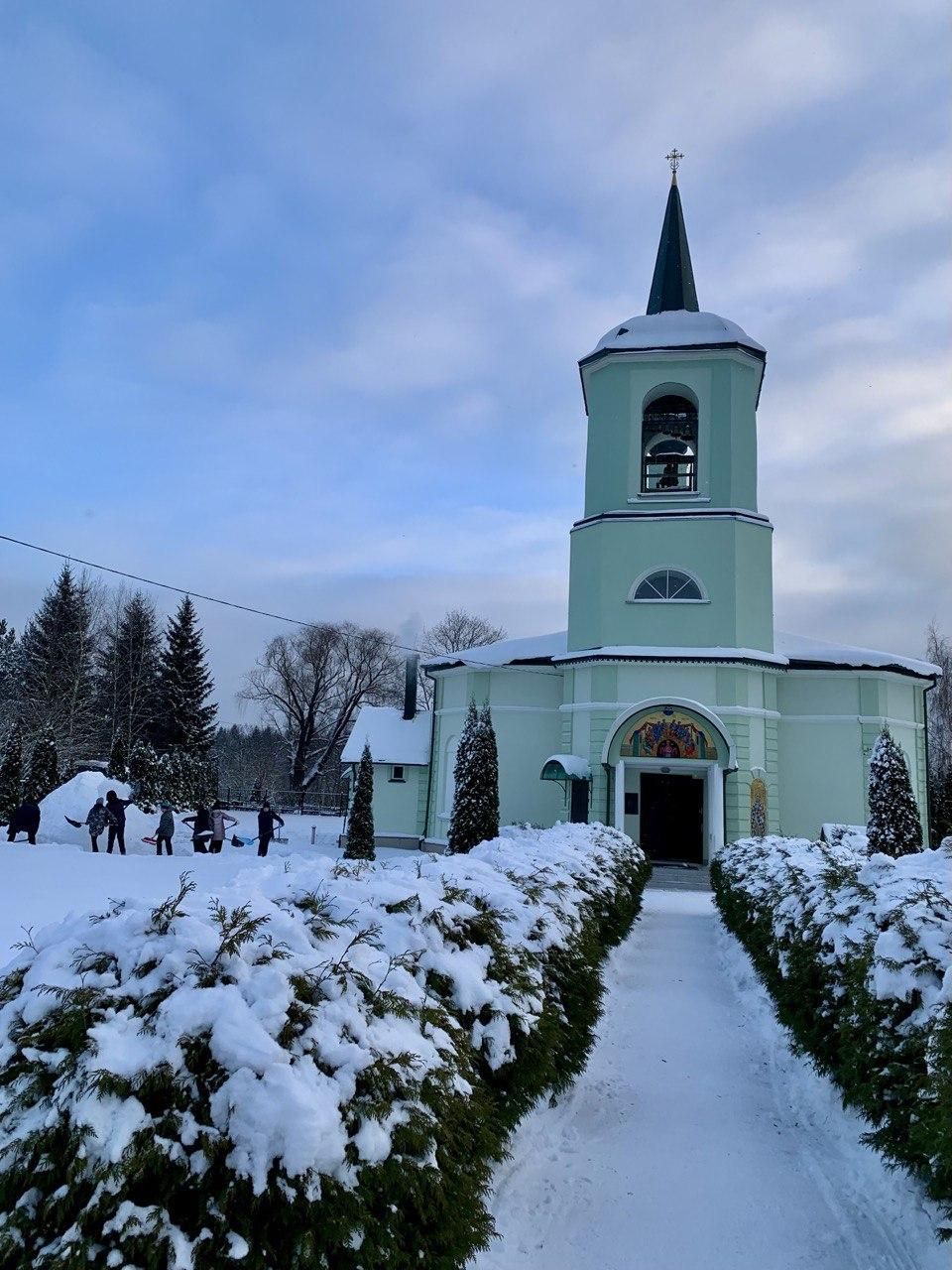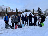 Также дети помогли насыпать снежную горку около храма, в которой в скором времени будет сделан Рождественский вертеп.