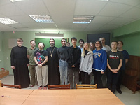 7 декабря в рамках Рождественских образовательных чтений в первом общежитии Государственного социально-гуманитарного университета состоялась встреча заведующего сектором по взаимодействию с высшими учебными заведениями Коломенской епархии иерея Александра Сирина со студентами данного высшего учебного заведения.