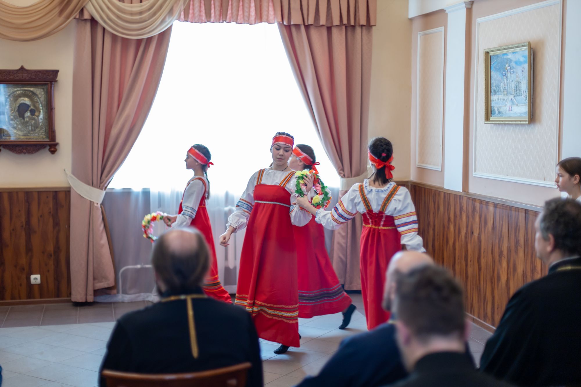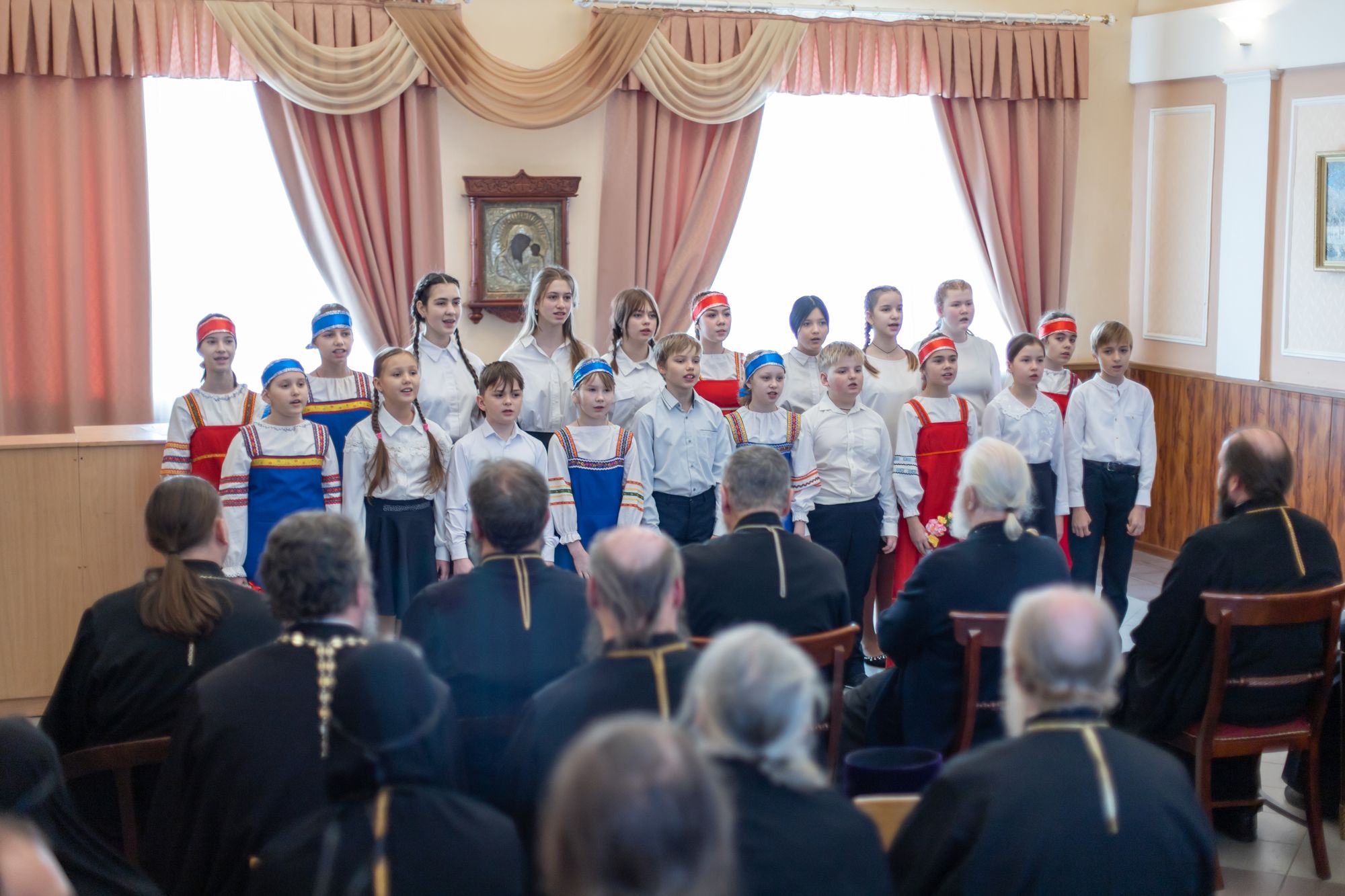 По окончании богослужения в актовом зале Духовного центра «Благовест» состоялся концерт, подготовленный педагогами и учащимися приходской воскресной школы.