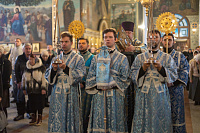 Его Высокопреосвященству сослужили: архиепископ Подольский и Люберецкий Аксий, епископ Балашихинский и Орехово-Зуевский Николай, секретарь Святейшего Патриарха по Московской области протоиерей Дионисий Казанцев, руководитель Юридической службы Московской митрополии иерей Василий Лосев, секретарь Епархиального совета Балашихинской епархии протоиерей Алексий Михаленя, благочинный Орехово-Зуевского округа протоиерей Андрей Коробков, благочинный монастырей Балашихинской епархии игумен Евмений (Лагутин), благочинный Богородского округа протоиерей Марк Ермолаев, благочинный Щёлковского округа протоиерей Андрей Ковальчук, благочинный Лосино-Петровского округа иерей Павел Галушко, благочинный Ликино-Дулёвского округа иерей Антоний Рыжаков, благочинный Павлово-Посадского округа иерей Александр Анохин, благочинный Шатурского округа иерей Иоанн Депутатов, настоятель Покровско-Васильевского монастыря города Павловский Посад игумен Андрей (Тонков), настоятель Гуслицкого Спасо-Преображенского монастыря игумен Серафим (Голованов), духовенство Балашихинской епархии.