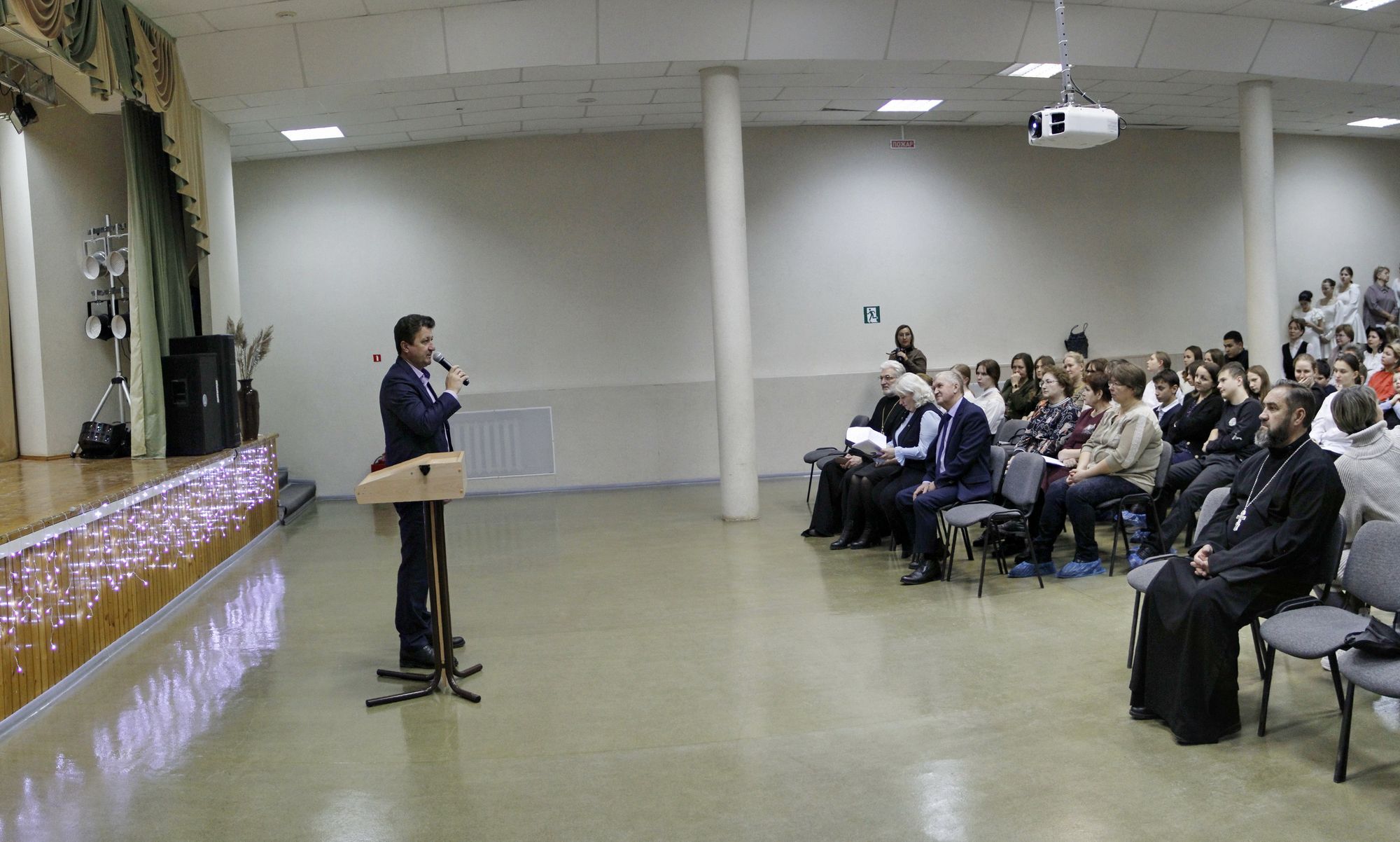 На мероприятии присутствовали благочинный Серебряно-Прудского церковного округа протоиерей Иоанн Велигорский и его заместитель иерей Владимир Шубин, Глава Серебряно-Прудского муниципального округа Павлихин Олег Викторович и его заместитель Волков А.И., Егорова Светлана Николаевна - начальник Управления по образованию администрации городского округа Серебряные Пруды, Пащенко Ирина Борисовна - директор СОШ им ВИ Чуйкова, священнослужители, педагоги образовательных организаций, учащиеся школ округа, гости.