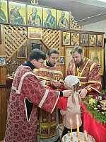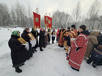 По окончании богослужения был совершён крестный ход до места строительства храма, после чего отец настоятель обратился к прихожанам с пастырским наставлением.