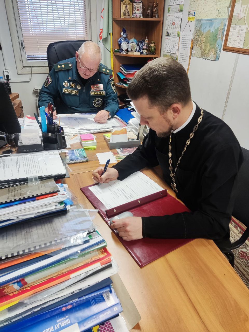 Во время процедуры подписания присутствовал ответственный за взаимодействие с Вооруженными силами, правоохранительными органами и казачеством в благочинии протоиерей Алексий Авдокушин.