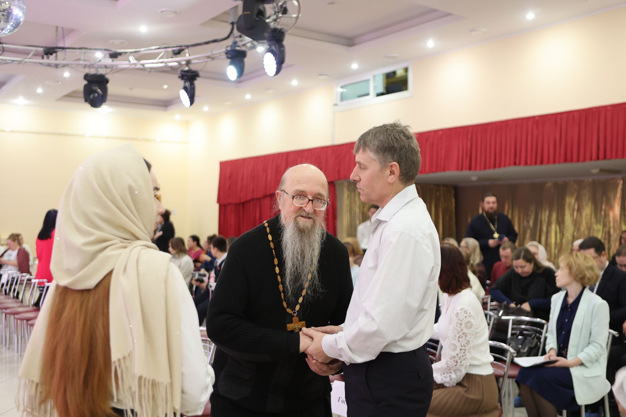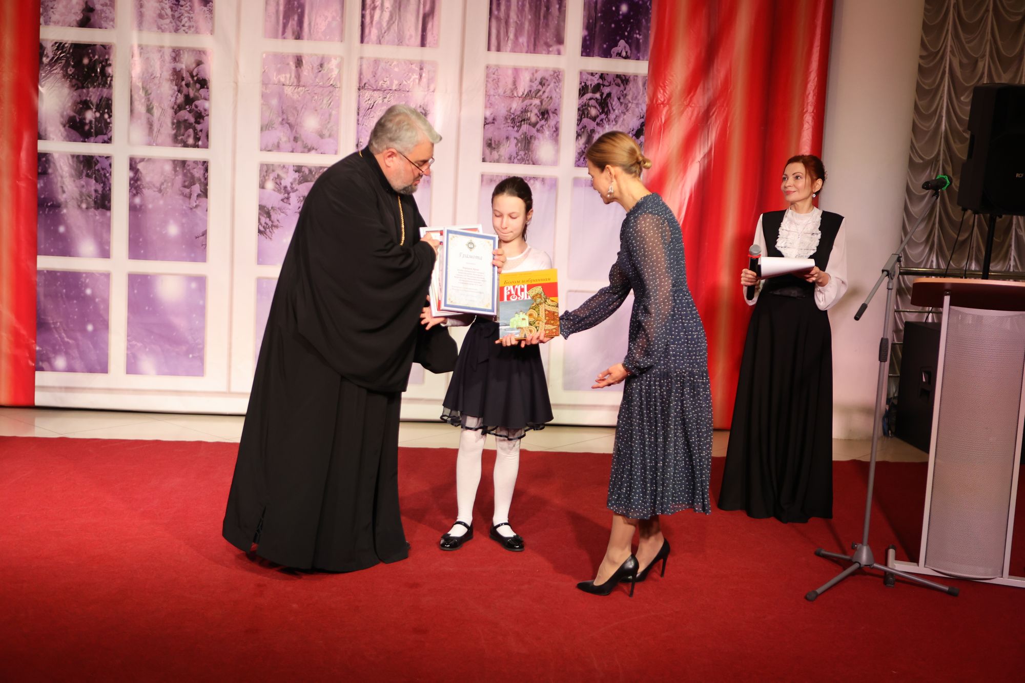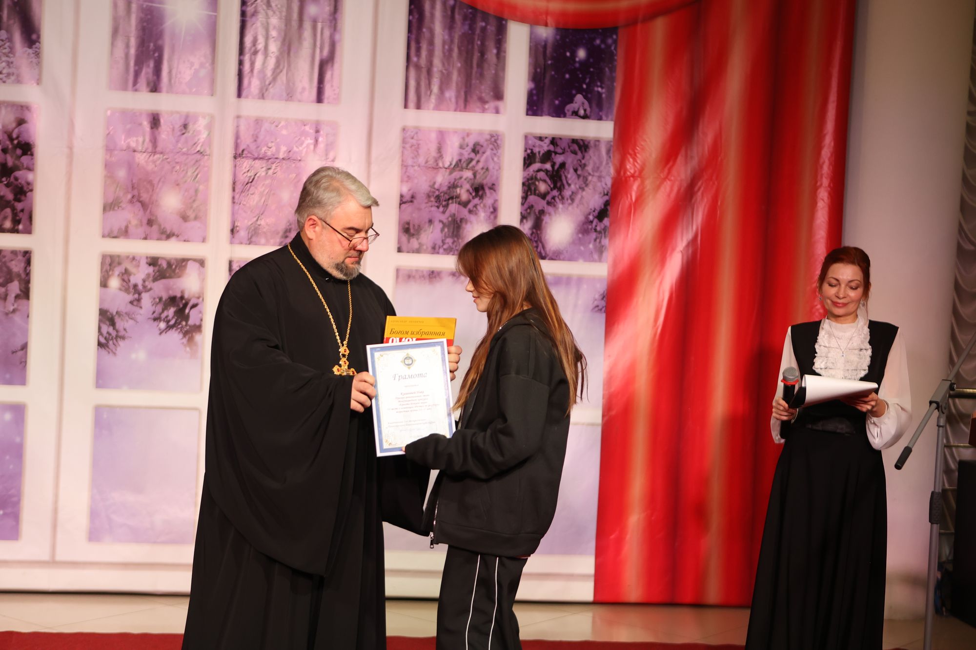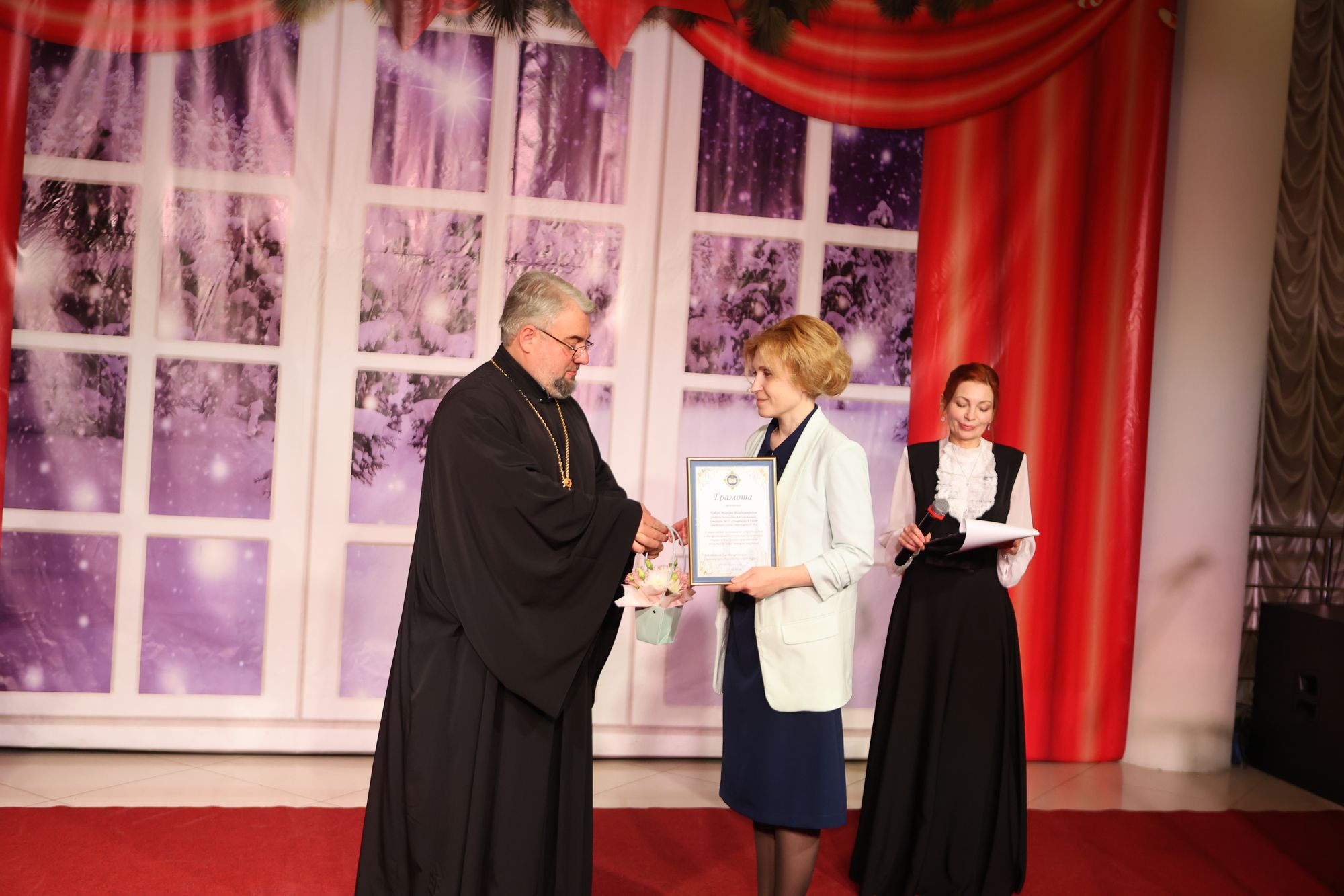 Затем состоялось награждение педагогов, внесших особый вклад в духовно-нравственное просвещение учащихся, победителей и призёров регионального и муниципального конкурсов, проходивших на территории Коломенской епархии, в том числе Международного конкурса детского творчества «Красота Божьего мира». Благочинный 2-го Воскресенского церковного округа протоиерей Сергий Рыбаков вручил Благодарственные грамоты Патриаршего наместника Московской митрополии митрополита Крутицкого и Коломенского Павла педагогам, а также грамоты и призы победителям и призёрам детских конкурсов.