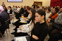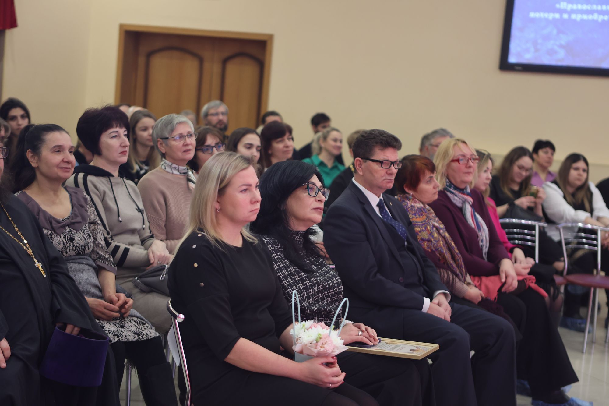 С докладом «Православие и отечественная культура: потери и приобретения минувшего, образ будущего» выступила гость мероприятия учитель начальных классов МОУ «Лицей им. Героя Советского Союза Стрельцова П. В.» Чабан М. В.