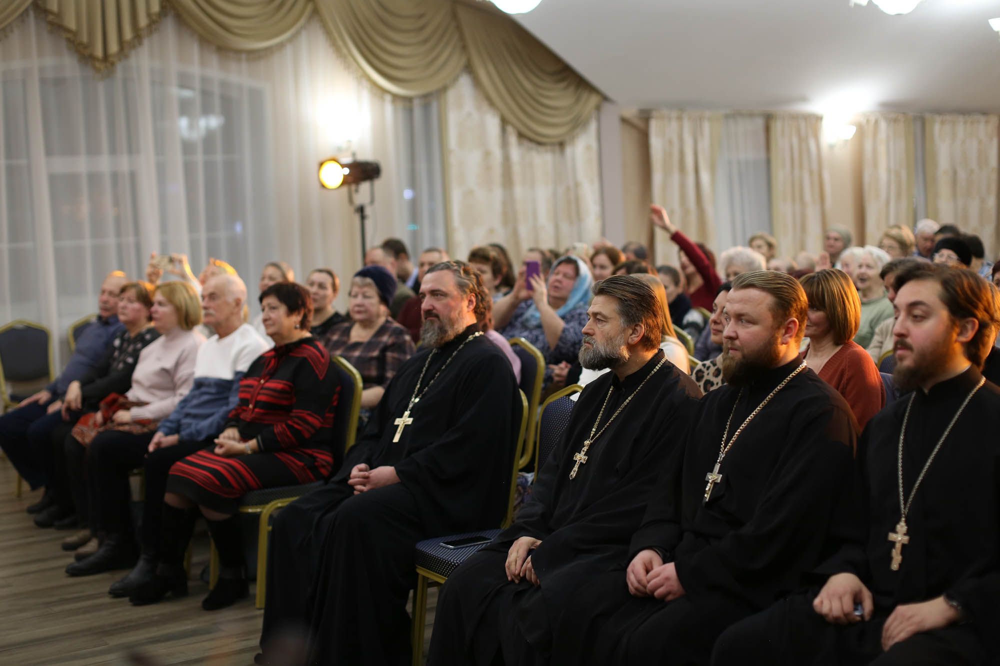 Открывая вечер, благочинный церквей Богородского округа протоиерей Марк Ермолаев рассказал, что это не первое совместное деяние духовенства и музыкантов оркестра. В декабре прошлого года коллектив в составе гуманитарной миссии Оперативного штаба Балашихинской епархии дал несколько концертов в войсковых подразделениях и госпиталях в зоне проведения СВО, чем поддержал боевой дух бойцов и утешил раненых.