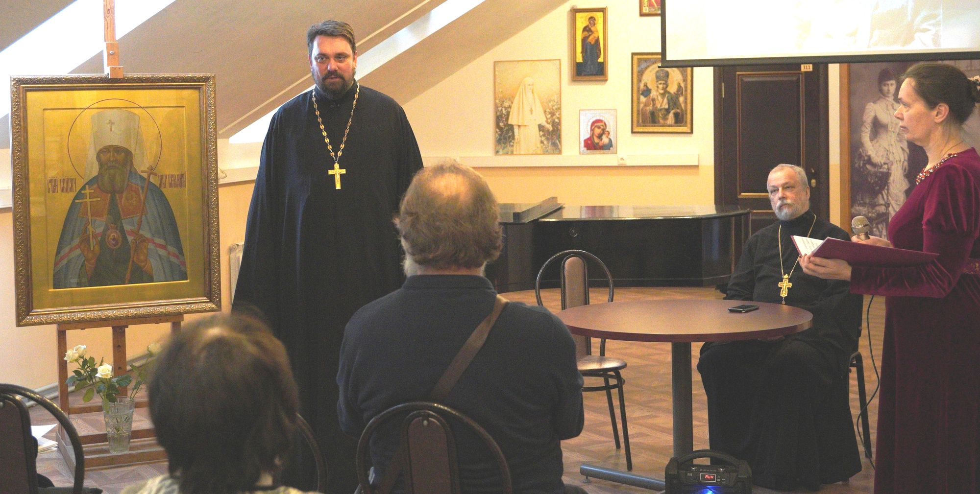 Встреча началась с соборной молитвы, пением тропаря священномученику Серафиму и приветственного слова благочинного Жуковского церковного округа, настоятеля Пантелеимоновского храма иерея Димитрия Денисова, в котором он отметил разносторонность личности владыки – блестящего офицера, писателя, художника, композитора, церковного деятеля, доброго пастыря. «Это не может не удивлять и не вдохновлять нас, узнающих об этом. Вот и мы, собираясь на такие душевные встречи, поддерживаем друг в друге необходимое для жизни и творчества вдохновение», - эти ободряющие слова адресовал собравшимся отец Димитрий.