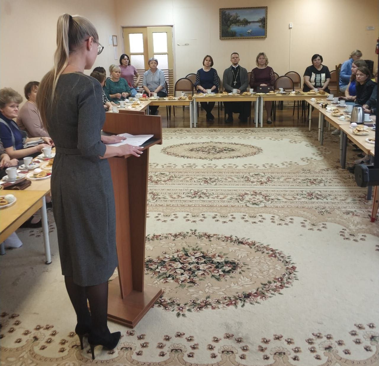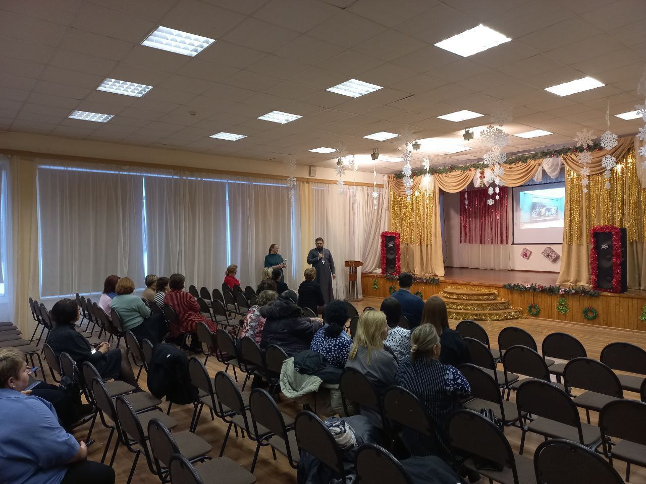 11 декабря в Средней общеобразовательной школе №2 имени Н.А. Тимофеева г. Бронницы состоялась встреча педагогов города с научным сотрудником Государственной Третьяковской галереи Верой Всеволодовной Донец. Тема встречи: «Картина Александра Иванова «Явление Христа народу» и духовные проблемы русской культуры XIX века». Встречу открыли выступления заместителя главы г.о. Бронницы Наталья Владимировны Меньшиковой, начальника Управления по образованию Аллы Владимировны Владимировой, ответственного по образованию в благочинии иерея Александра Ионова.