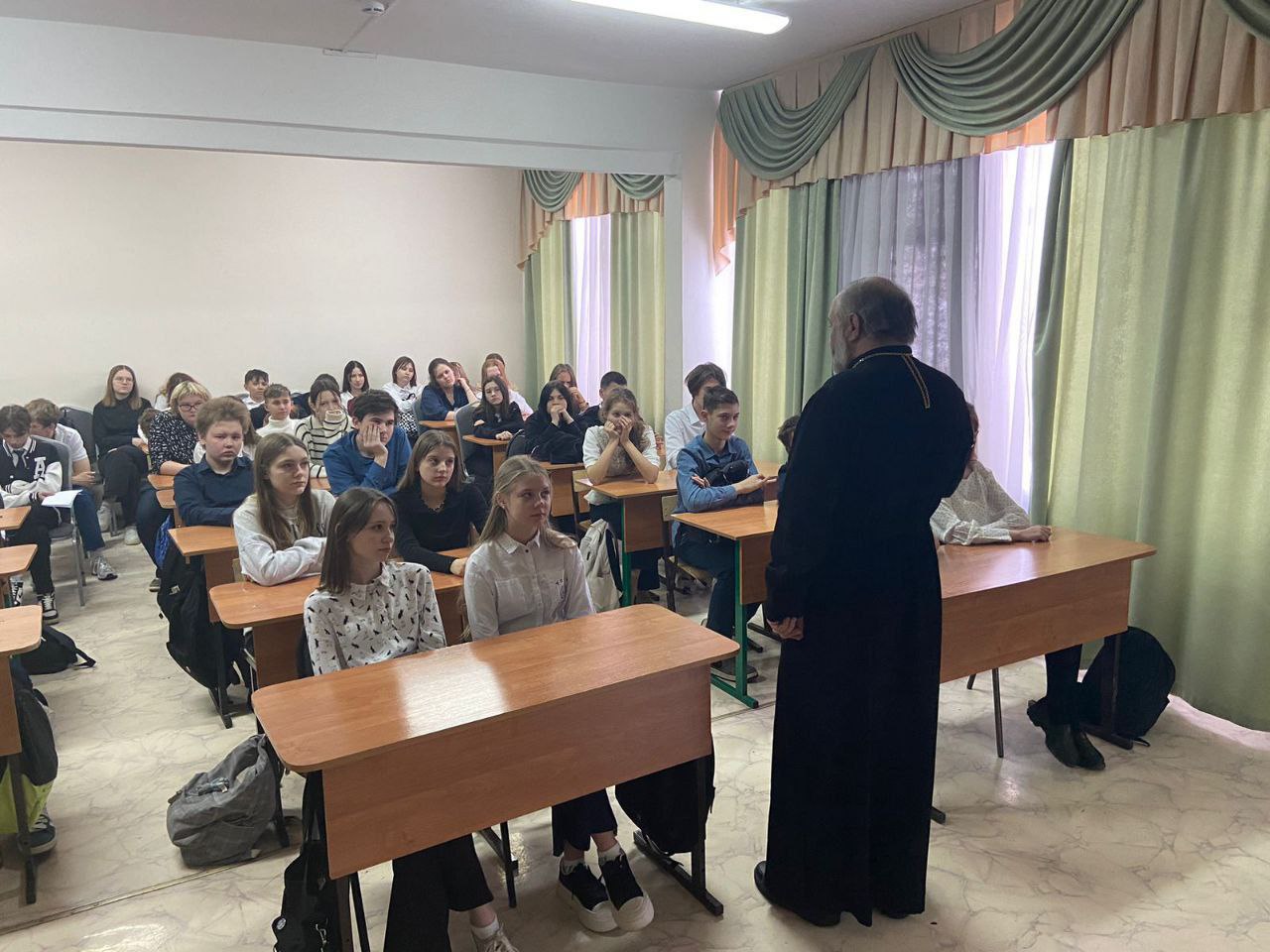 4 декабря в Константиновской средней школе состоялась встреча настоятеля Михаило-Архангельского храма с. Константиново протоиерея Георгия Пищулина с учащимися 8-10 классов Константиновской и Ильинской школ. Встреча была посвящена великому русскому полководцу А.В. Суворову.