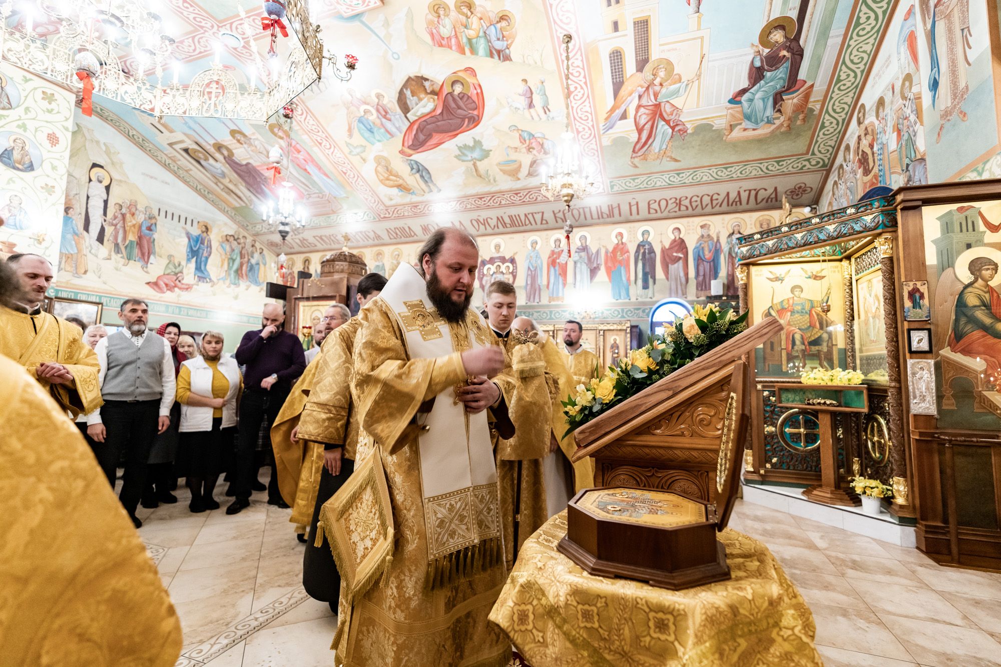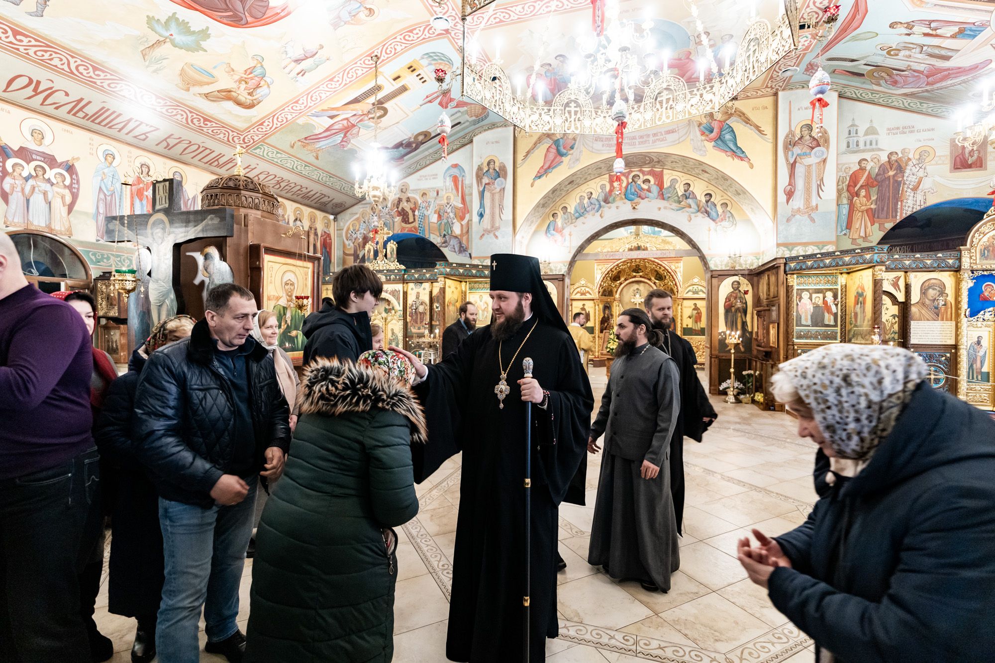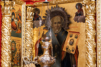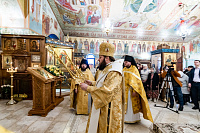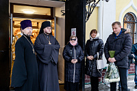 По окончании Божественной литургии к архиепископу Аксию со словами благодарности за совершённое богослужение обратился настоятель Никольского храма протоиерей Сергий Свалов и подарил на молитвенную память Казанский образ Пресвятой Богородицы: до революции храм находился на территории села Казанско-Богородское.