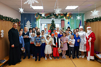 25 декабря в школе-интернат г. Красноармейска прошла встреча настоятеля Никольского храма с. Царёво священника Сергия Львова с воспитанниками. Ребята показали новогодний спектакль и прочитали стихотворения, посвященные праздникам Рождества Христова и Нового года. Отец Сергий, в свою очередь, поздравил детей и педагогов с наступающим праздником Рождества Христова и Новолетием. В завершении праздника всех детей ждали сладкие подарки.
