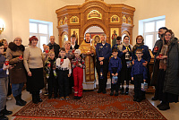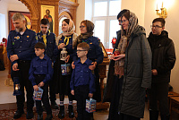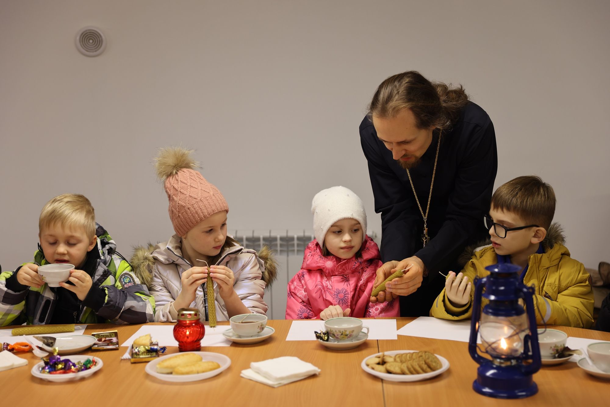 30 декабря молодежь из Братства Православных следопытов Коломенской епархии доставили Вифлеемский огонь с Крутицкого Патриаршего подворья в Смоленский храм-часовню деревни Молитвино. По окончании Божественной литургии и молебна о благословении Божием на наступающий новый год для прихожан и гостей был проведен мастер-класс по изготовлению свечей. За чаепитием с православной молодежью председатель Отдела по миссионерской работе и делам молодежи Коломенской епархии священник Иоанн Бакушкин рассказывал о том, для чего мы ставим свечи в храме и о важности молитвы. По завершении встречи священник Иоанн вручил в подарок встречающим Вифлеемский огонь по лампаде и шоколадке, православным следопытам сладкие подарки.