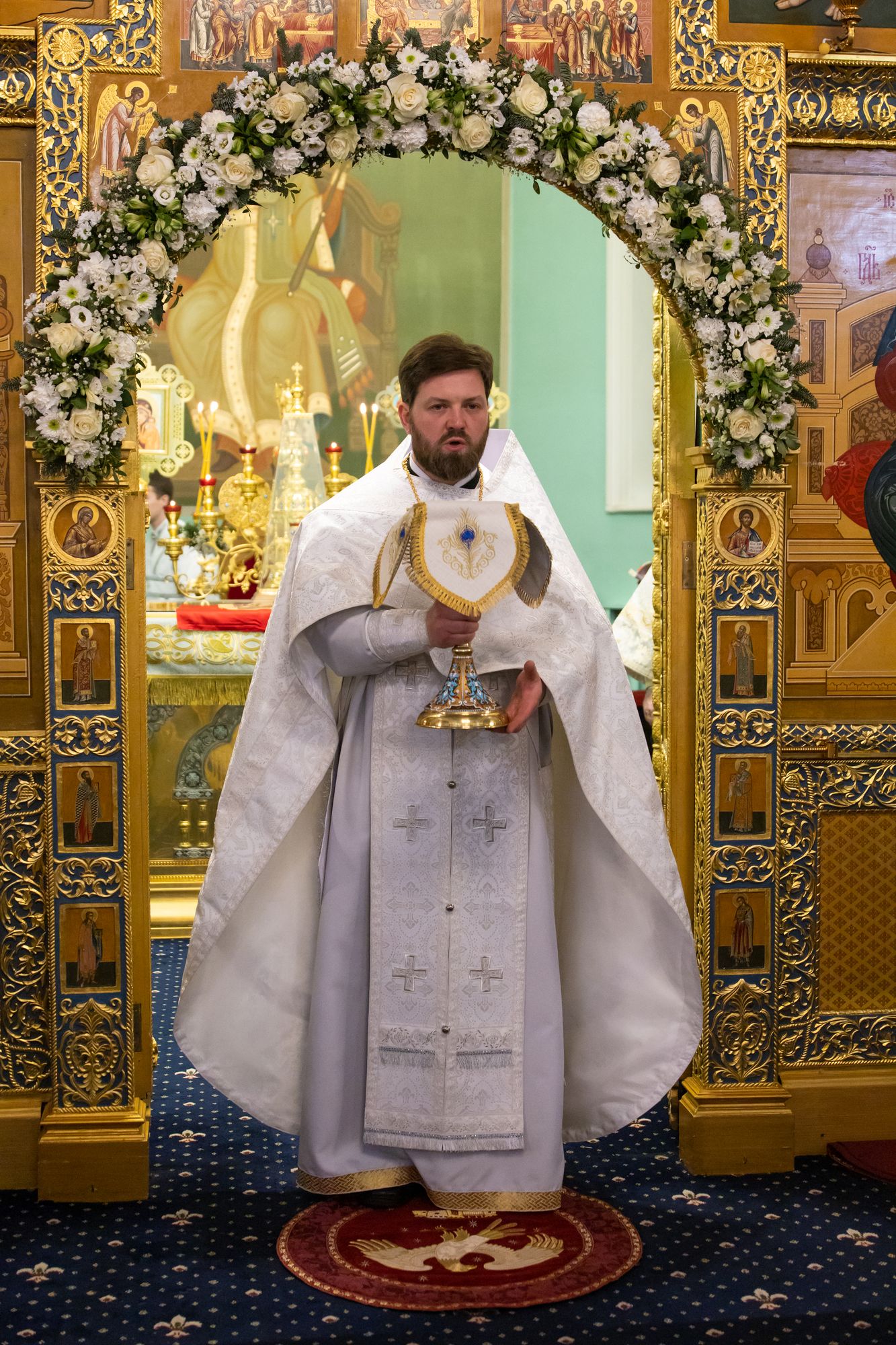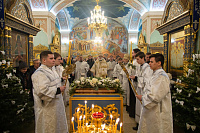 Богослужебные песнопения исполнил соборный хор под управлением Натальи Камышниковой.