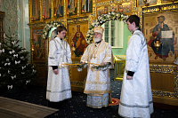 После Евангельского чтения митрополит Павел огласил Рождественское послание Святейшего Патриарха Московского и всея Руси Кирилла.