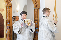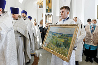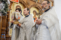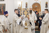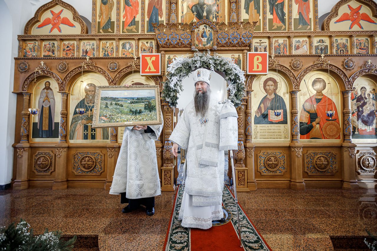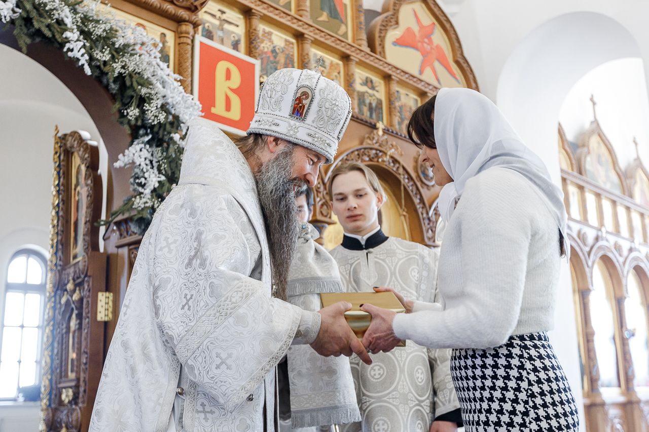 По окончании Божественной литургии настоятель храма поблагодарил епископа Кирилла за архипастырский визит и передал ему памятный подарок.
