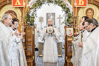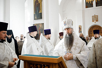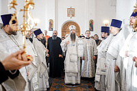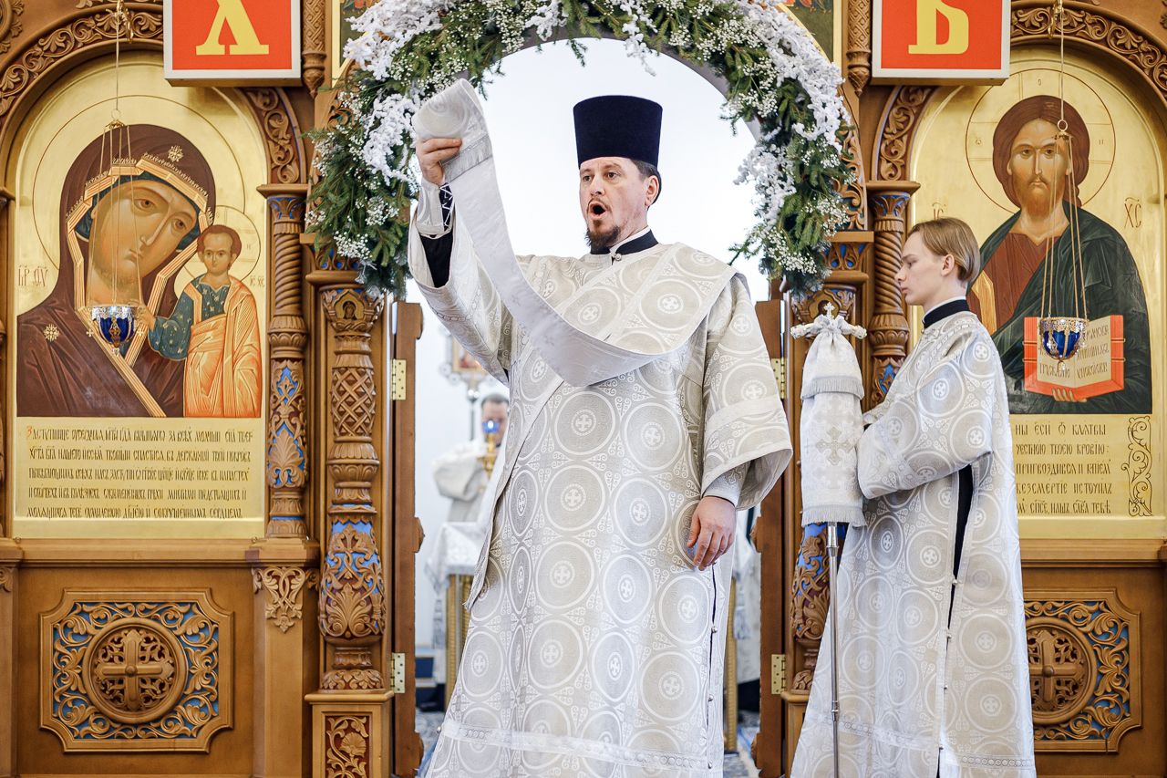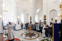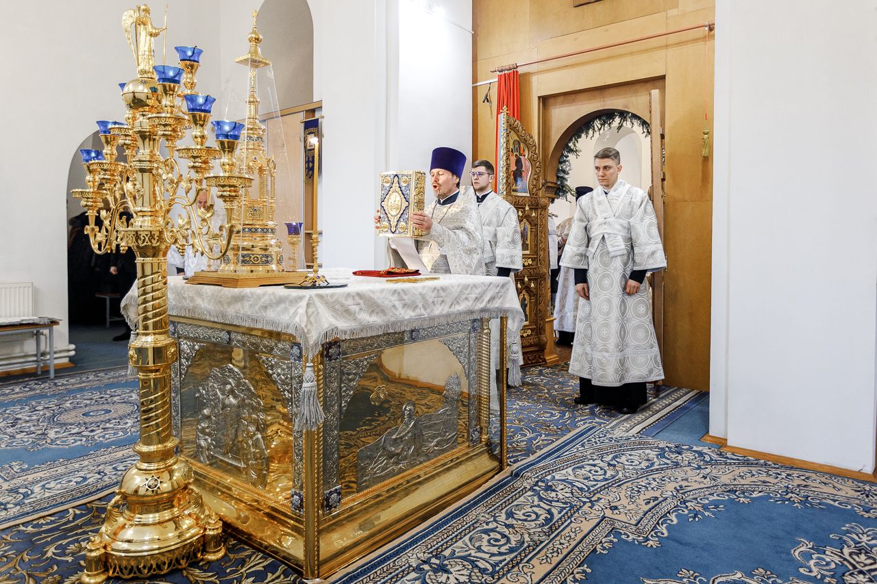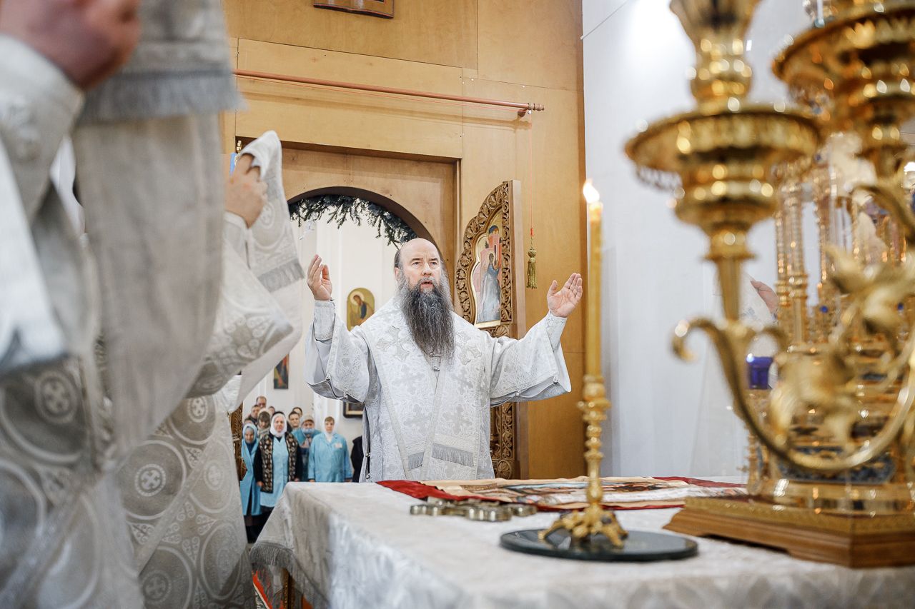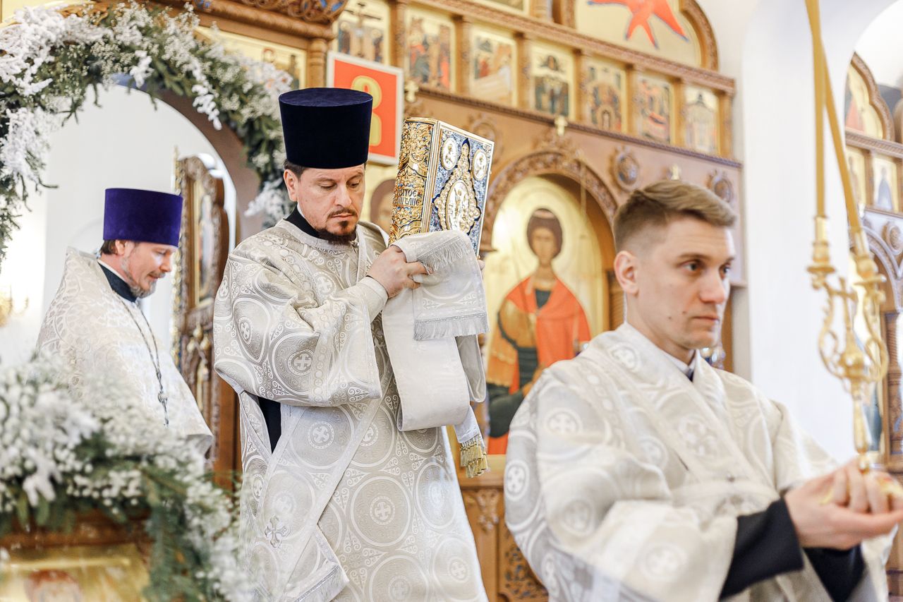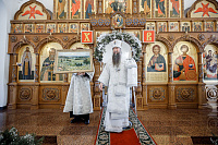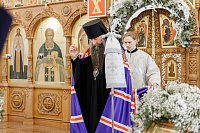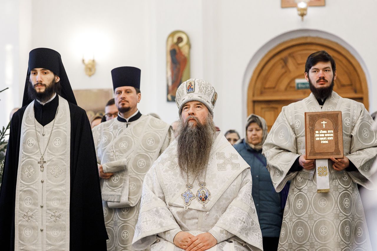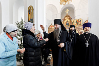 13 января епископ Сергиево-Посадский и Дмитровский Кирилл совершил Божественную литургию в храме Казанской иконы Божией Матери г. Долгопрудного.