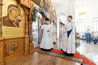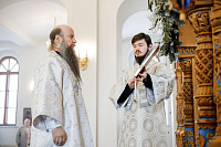 Его Преосвященству сослужили: благочинный Долгопрудненского церковного округа протоиерей Андрей Хмызов, настоятель храма протоиерей Александр Суворкин, а также духовенство благочиния.