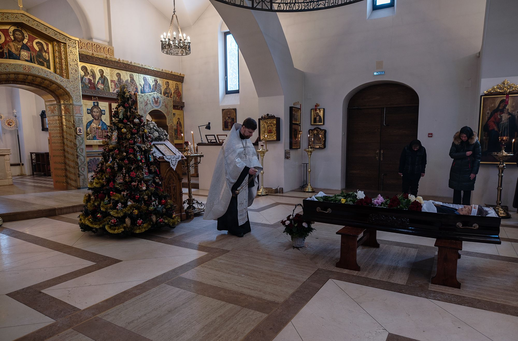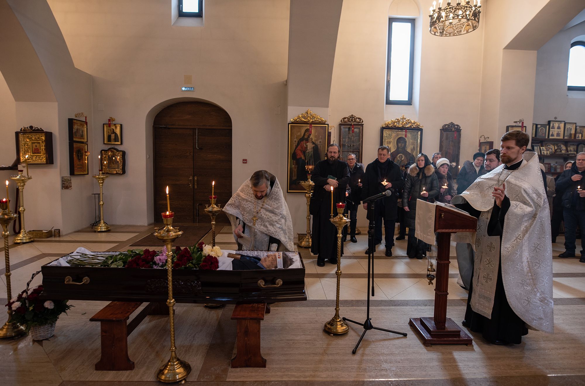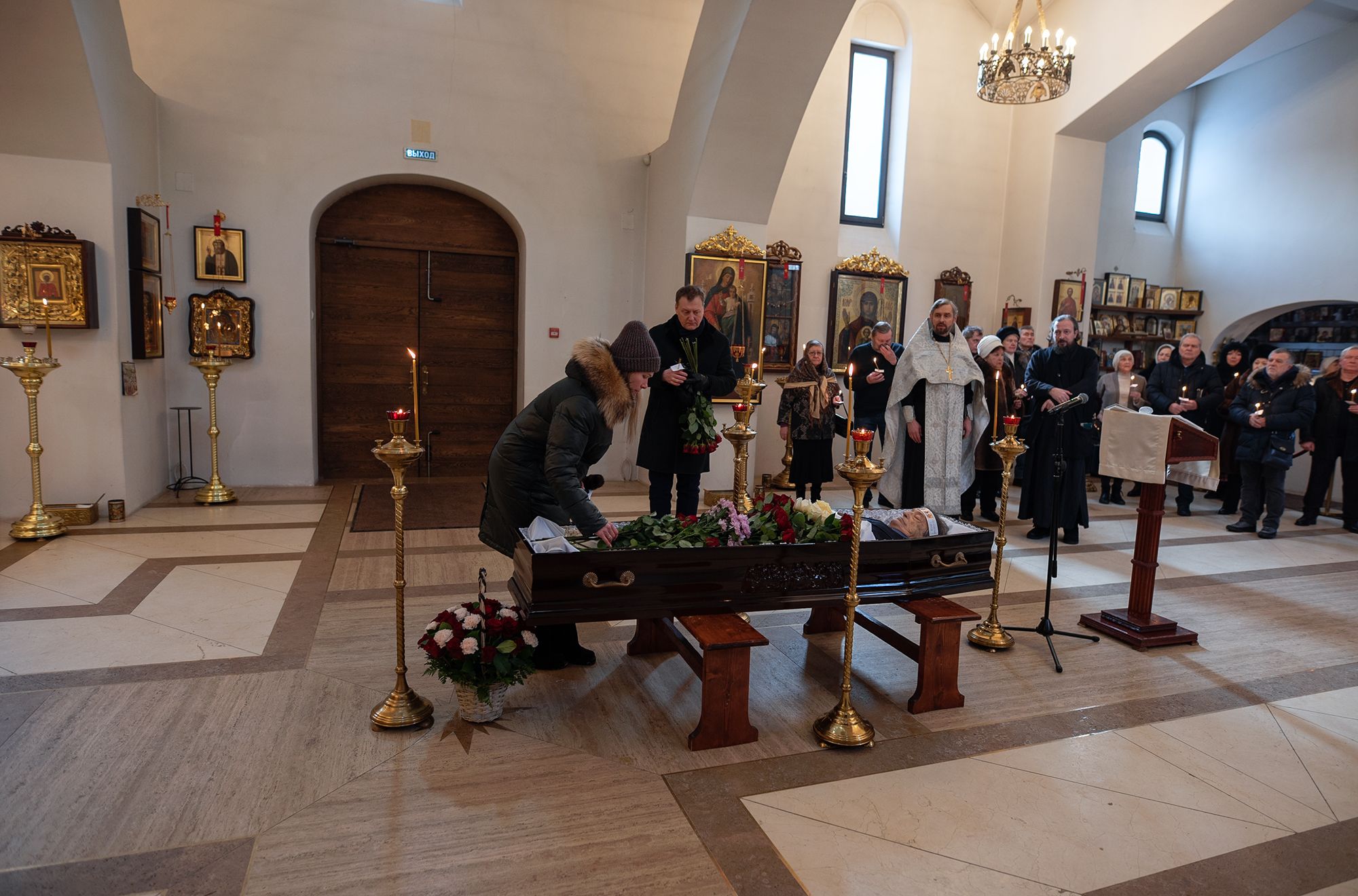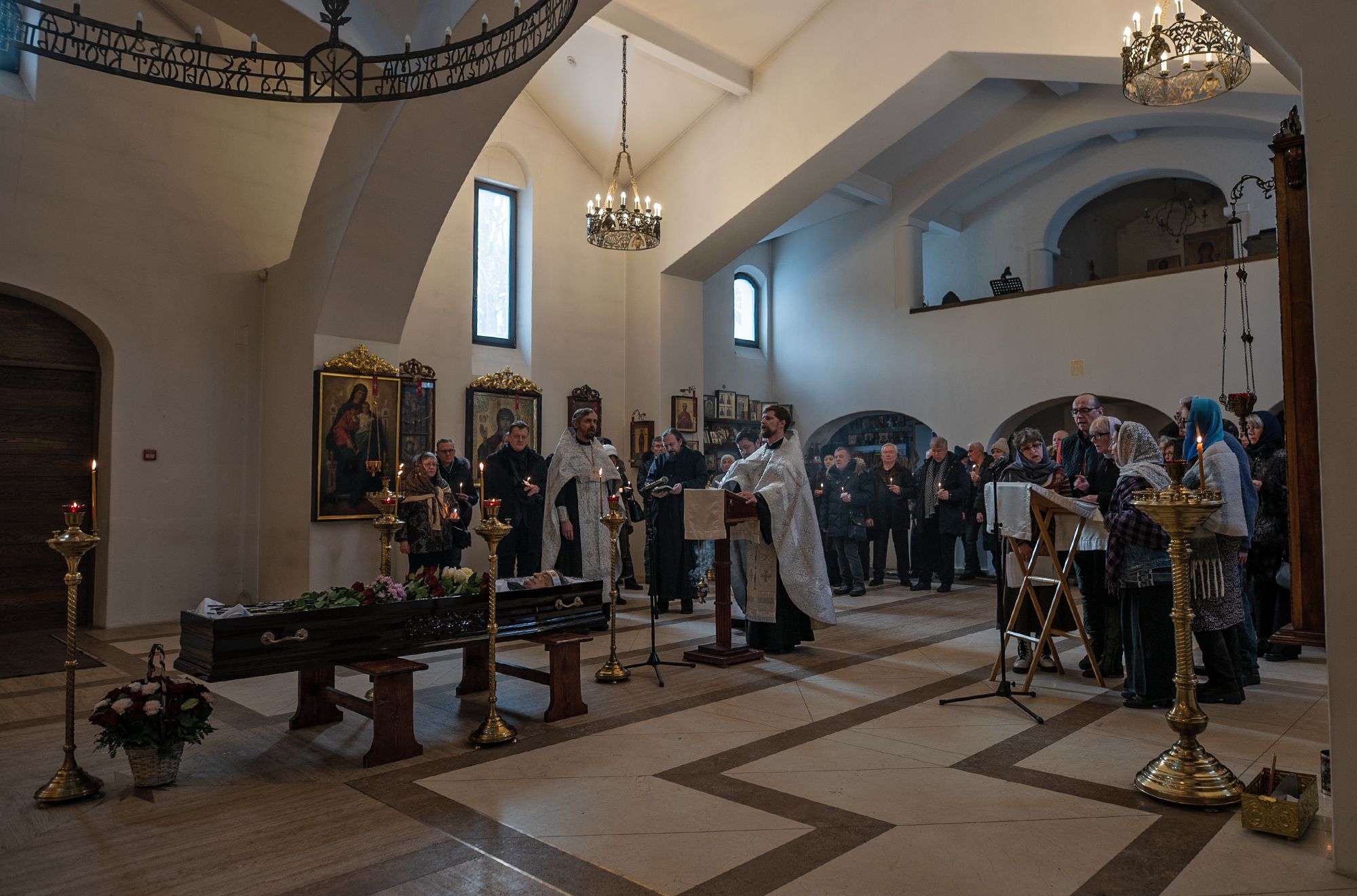 Отпевание совершил благочинный Королёвского церковного округа священник Димитрий Поповский в сослужении настоятеля Владимирского храма священника Глеба Козлова.