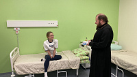 Архиепископ Аксий посетил маленьких пациентов, проходящих курс реабилитации, и поздравил их с праздником Рождества Христова, вручив сладкие подарки.
