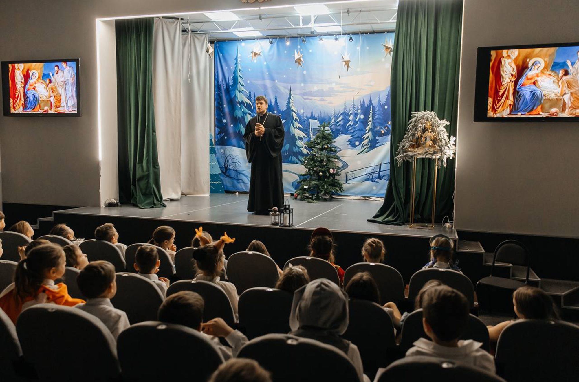 8 января молодежный театр при Георгиевском храме показал спектакль в школе № 2 г. Ивантеевки. Был показан спектакль «Рождественская постановка». Перед началом спектакля настоятель храма священник Алексий Барашков обратился к присутствующим с поздравительным словом.