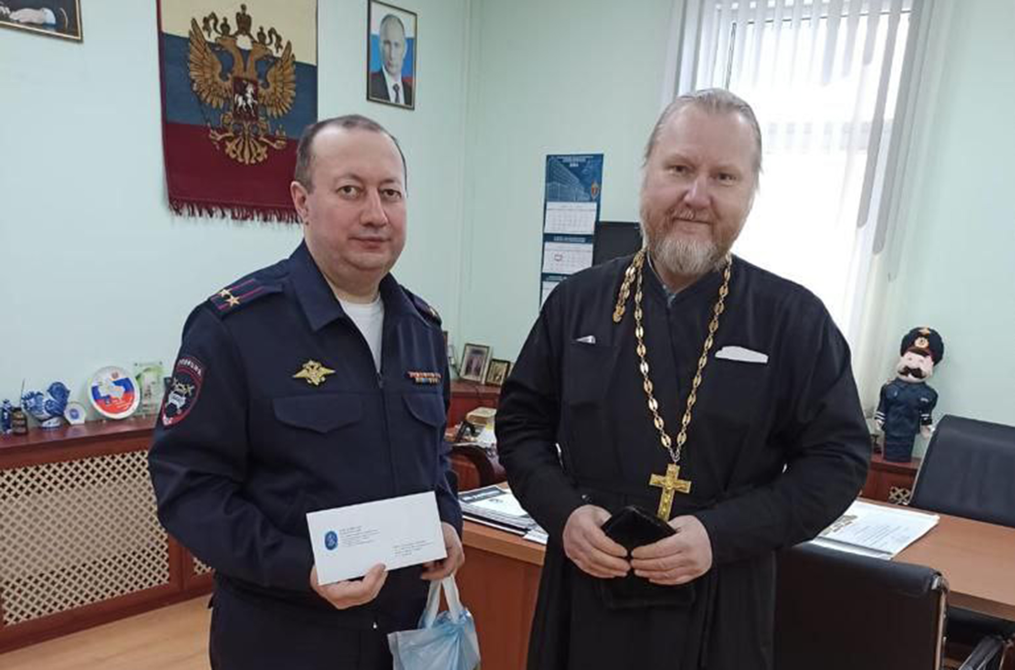 9 января клирик Серафимовского храма г. Королёва священник Андрей Шмырев поздравил руководителей ОГИБДД, отдела УФМС и Болшевского отдела полиции с праздником Рождества Христова.