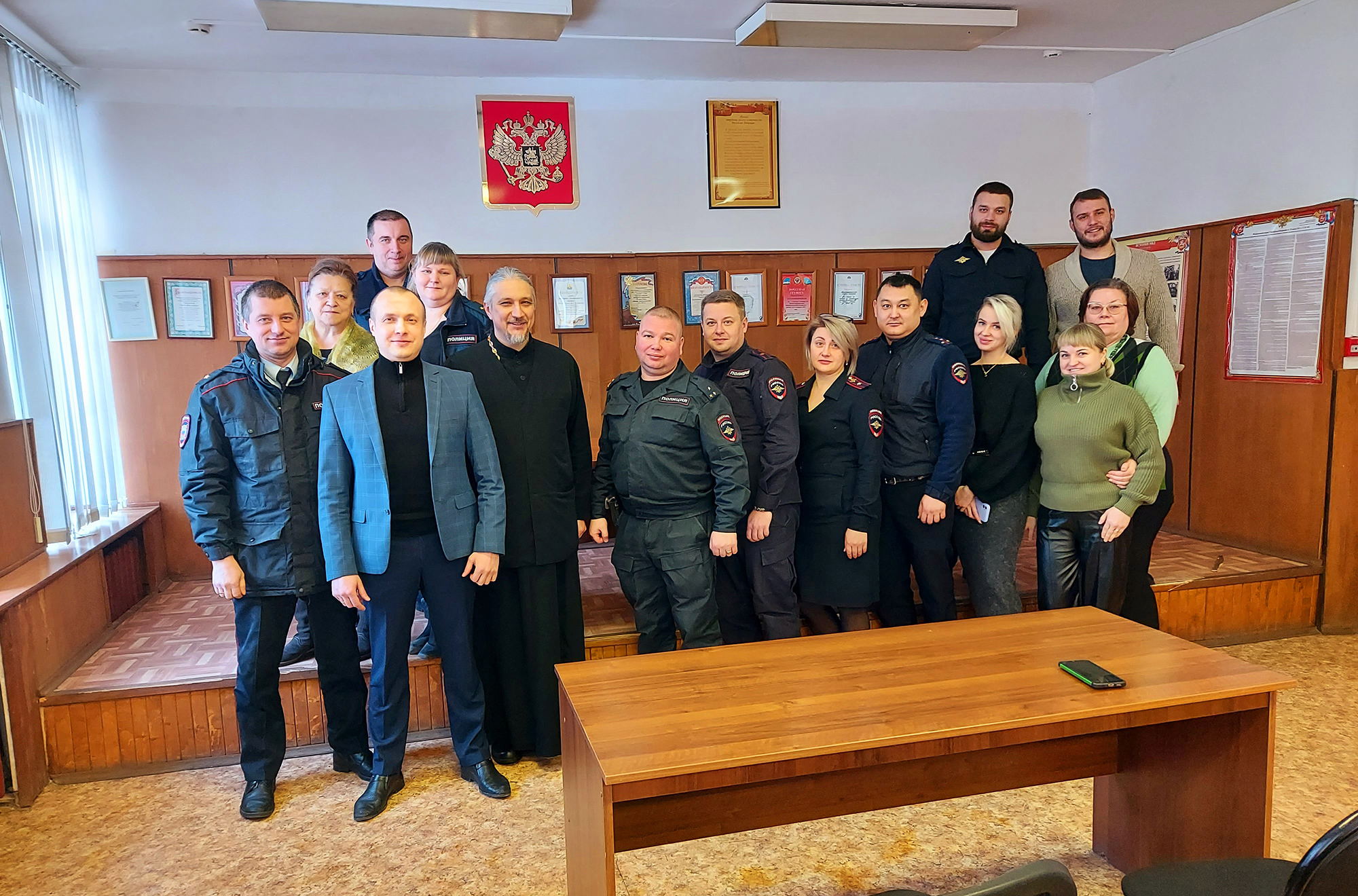 Состоялась встреча настоятеля храма свт. Николая Чудотворца с. Царёво священника Сергия Львова с сотрудниками отдела отдела полиции по г. Красноармейску. Священник поздравил личный состав отдела с праздником Рождества Христова.