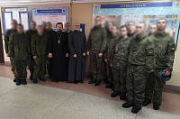 10 января настоятель храма блаженной Матроны Московской пос. Любимовка священник Никита Потапов, ответственный в Королёвском благочинии за взаимодействие с Вооруженными силами и казачеством, провел занятие с военнослужащими 50-го Противоракетного комплекса на тему праздника Рождества Христова.