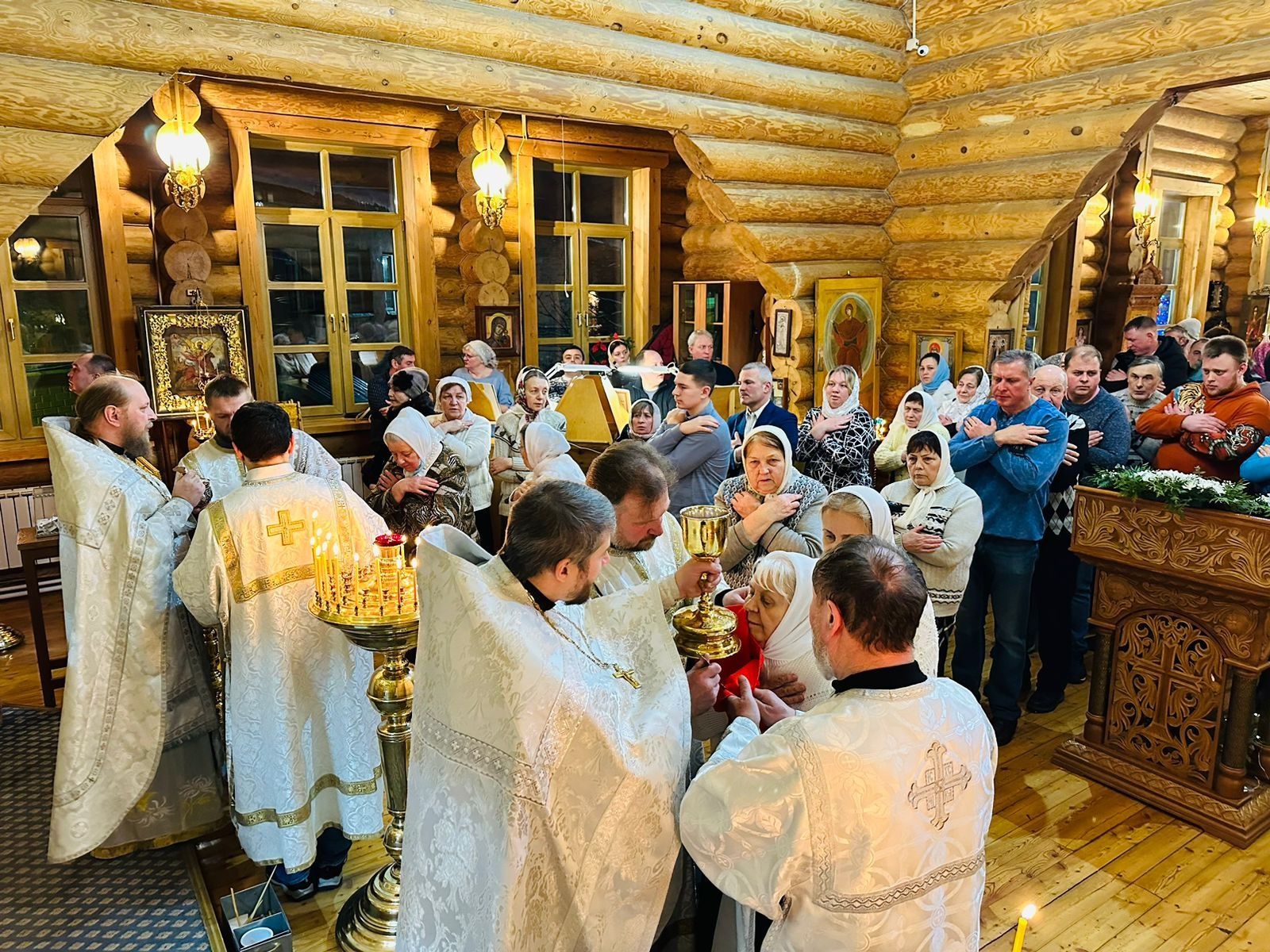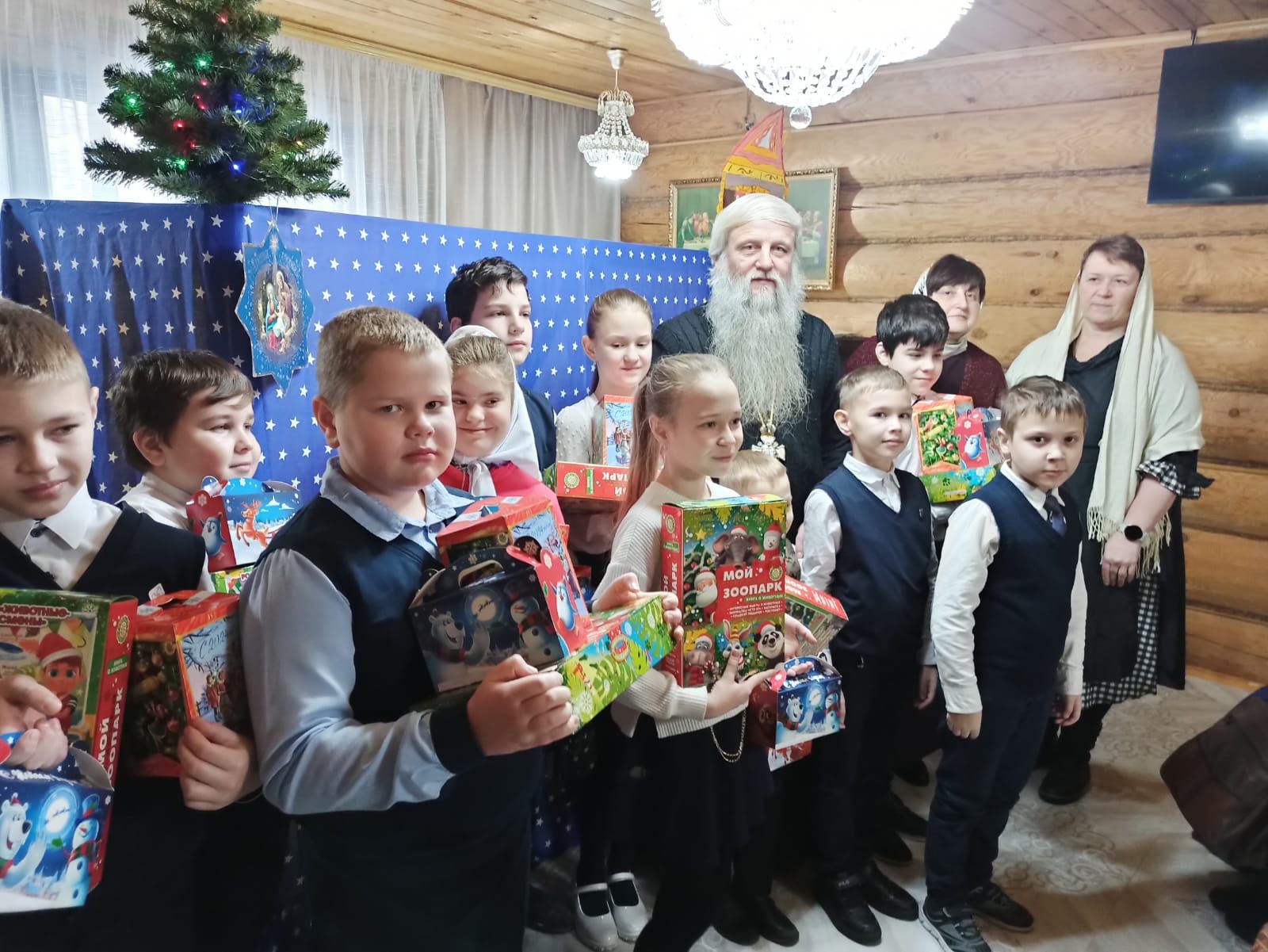 7 января 2024 года после праздничных богослужений в Казанском Храме д. Гридино детям были вручены подарки, взрослым – просфоры с ночной службы, всех угостили вкусными пирогами.