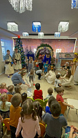 11 января 2024 года члены молодёжного клуба "Скрижаль" прихода Знаменского храма д. Алёшино посетили дошкольное отделение МОУ СОШ №13 в пос. Новый. Настоятель храма иерей Роман Теребилкин выступил с приветственным словом и поздравлениями с наступившими праздниками и святками. Скрижальцы представили зрителям музыкально-литературную композицию о Рождестве Христовом. Дошкольники исполнили стихи и песни, посвящённые празднику. Были проведены весёлые игры.