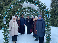14 января 2024 года учащиеся взрослой воскресной школы и молодёжного клуба "Скрижаль" при Знаменском храме д. Алёшино вместе с настоятелем иереем Романом Теребилкиным и педагогами совершили поездку в г. Гжель на Рождественский фестиваль воскресных школ "Свет Рождественской звезды" и, погрузившись вновь в атмосферу святой ночи, послушали стихи, песни и колядки в исполнении детей и взрослых. Затем состоялась поездка в Покровский храм с. Карпово, в котором настоятель храма иерей Андрей Булгаков провел для гостей экскурсию, они поклонились святыням храма, познакомились в церковном доме с кукольным и теневым театрами.