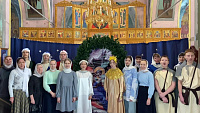 14 января 2024 года в Знаменском храме д. Алёшино по окончании богослужения учащиеся воскресной школы "Рассвет" поздравили прихожан с праздником и исполнили для всех собравшихся в храме рождественские песни и колядки.